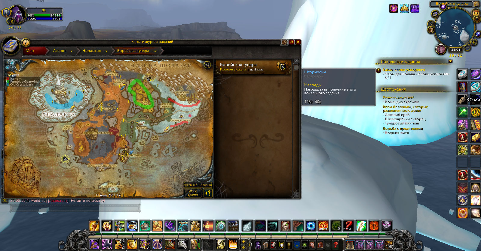 | Description | Подобный баг был ранее на Дреноре, а именно в Долине призрачной луны, когда нельзя было юзать флая. Так же появляется профессиональная локалка Валарьяров. На этот раз в Борейской Тундре по координатам 29,72. на скриншоте видно всплывающую локалку. | ||||
