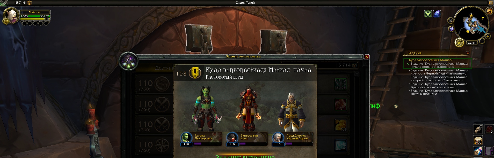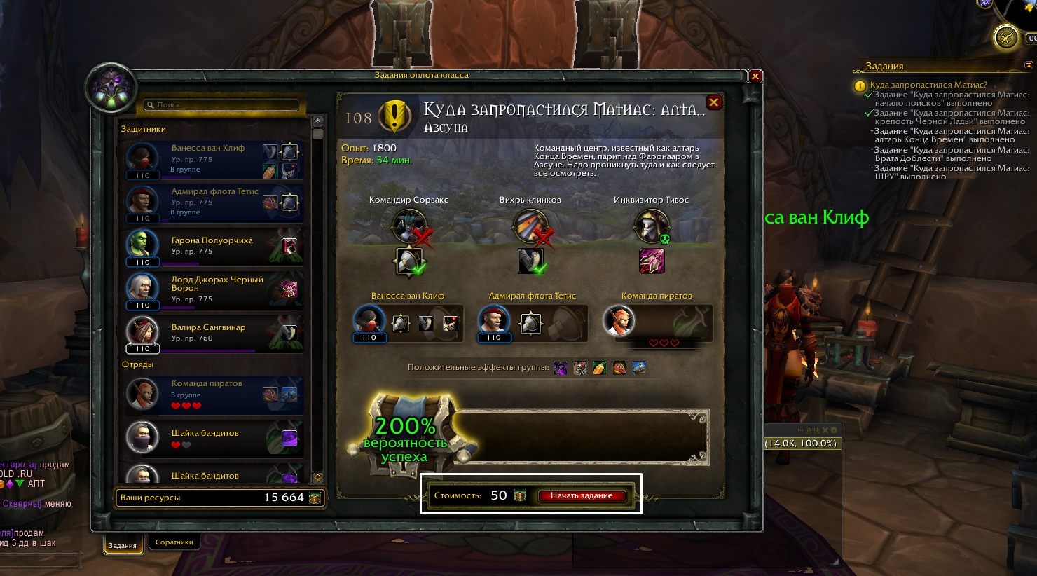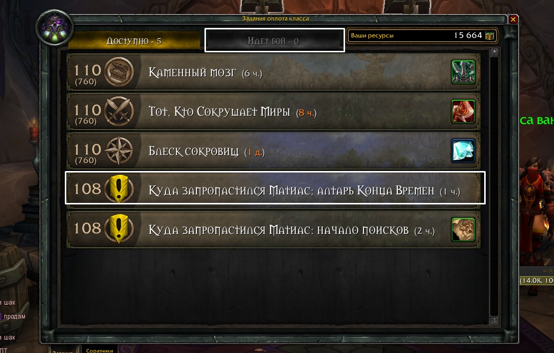 | Additional Information | от тестера https://ru.wowhead.com/quest=43469 не работает Проблема с генерацией миссий. Третью и дальше миссию нельзя выполнить https://ru.wowhead.com/mission=1246 https://ru.wowhead.com/mission=1247 https://ru.wowhead.com/mission=1248 https://ru.wowhead.com/mission=1249 https://ru.wowhead.com/mission=1250 https://youtu.be/sTh-cd08se4 | ||||