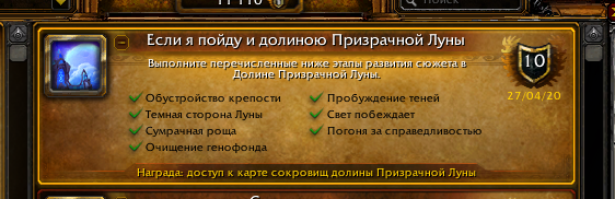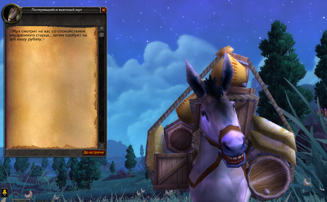 | Description | Делал достижение "Если я пойду долиною Призрачной Луны. Случайно встретил мула, сделал кв и кв закончилось в гарнизоне. Сейчас узнал, что кв мула должно было привести нпс, у него кв должно было даться и только потом в гарнизоне сдаться. В итоге Сумрачная роща для ачивки не засчиталась | ||||