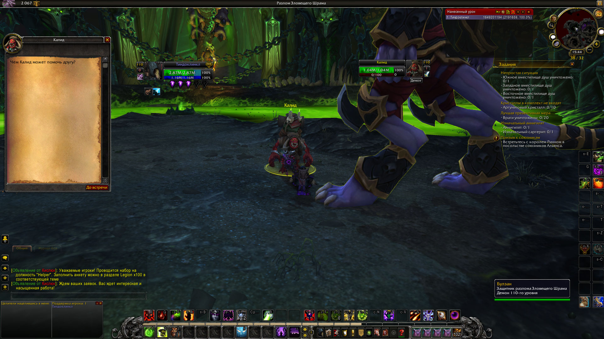 Лок. А если сейчас зайти им в Клоаку в центральный зал, туда где круг бойцовский нарисован? Воспоминание на грани - когда делал кампанию варлока , пару раз приходилось спускаться в Клоаку, в центр. И там сдавать/брать квесты. Поначалу, пока оплот не раскочегарился. |