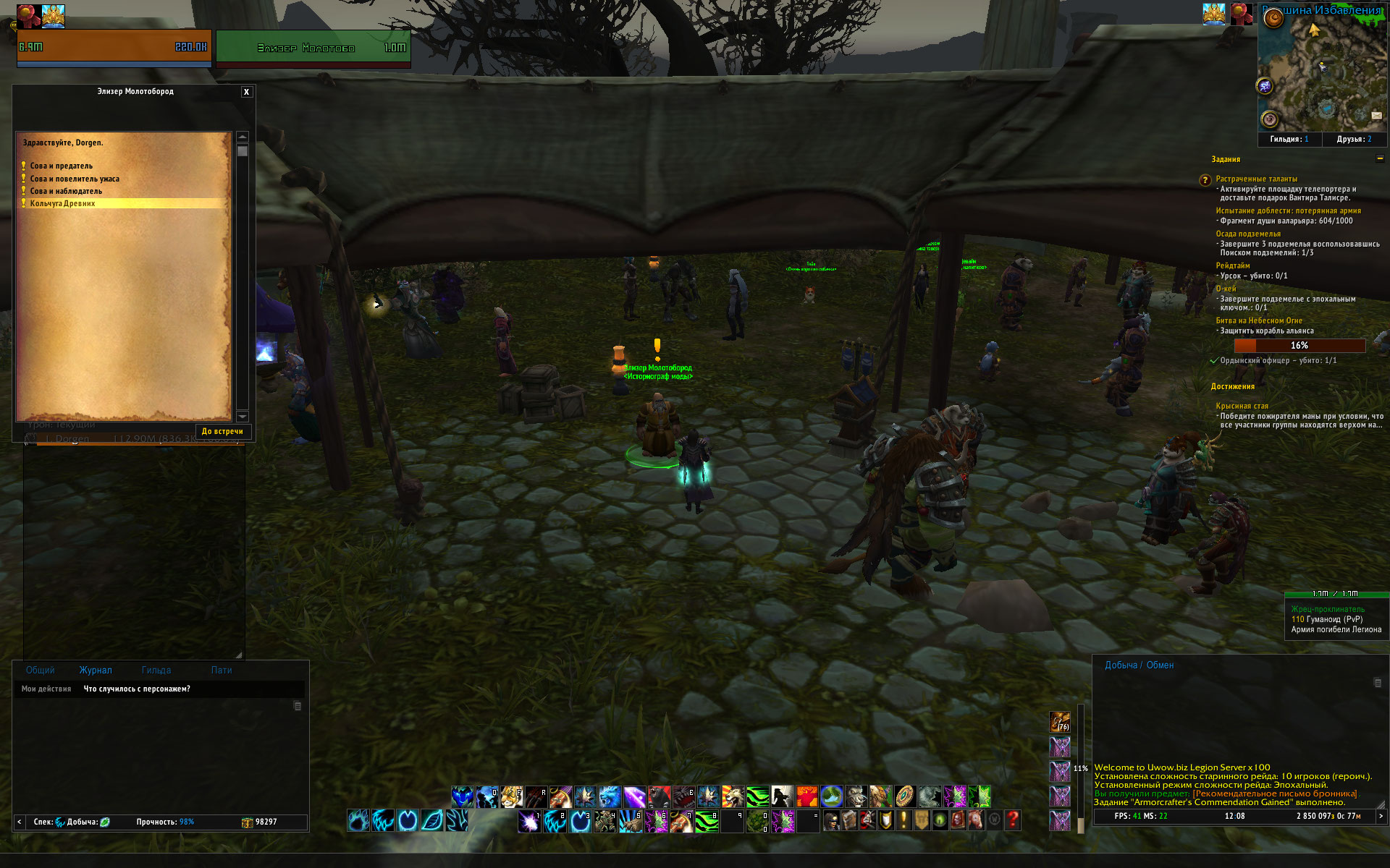 | Description | У НПС Элизер Молотобород (https://ru.wowhead.com/npc=120221/%D1%8D%D0%BB%D0%B8%D0%B7%D0%B5%D1%80-%D0%BC%D0%BE%D0%BB%D0%BE%D1%82%D0%BE%D0%B1%D0%BE%D1%80%D0%BE%D0%B4) несколько месяцев выдаются квесты только на крафт кольчужной леги. Все квесты для кожанной леги отсутвуют Кожевничество изучено на 800. Крафт лег известен Проблема описывалась ранее на старом форуме (http://forum.uwow.biz/topic/289155-v-razrabotke-ne-dayutsya-kvesty-na-kozhannuyu-legu/) Ожидание следующих недель, очистка кэша и переизучение профессии (с обратным поднятием ее до 800) не помогли | ||||
