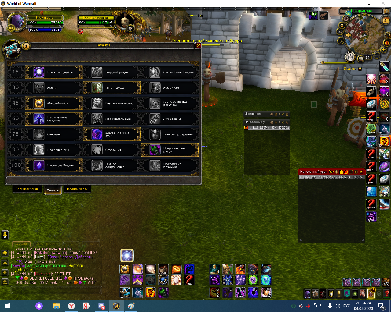 Не думаю, что замерять дпс шп на манекене корректно. Во-первых, основной урон шп входит на экзекутке. Получается, что Вы бьете все время без прибавки к урону в 20%. Во-вторых, у Вас нет возможности использовать ШВД на манекене. Для того, чтобы говорить о "поломках" шп, этого явно недостаточно. Предлагаю записать видео реального боя (желательно, Вариматрас в героическом уровне сложности, как раз получится среднестатистический 3-х минутный бой в СТ), или же просто после боя с боссом сделать скрины среднего урона у каждой вызывающей сомнения способности и, самое главное, сколько процентов времени в течение боя был активен облик бездны. |
