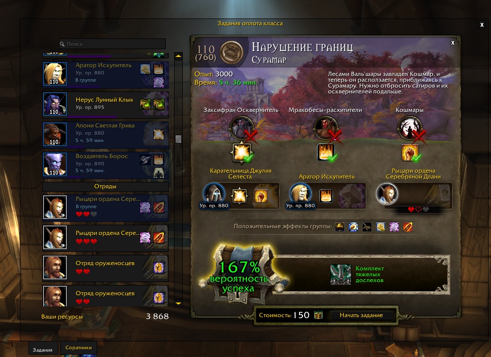 | Description | При назначении сортаников на квест в оплоте, процент успеха вычисляется некорректно. | ||||