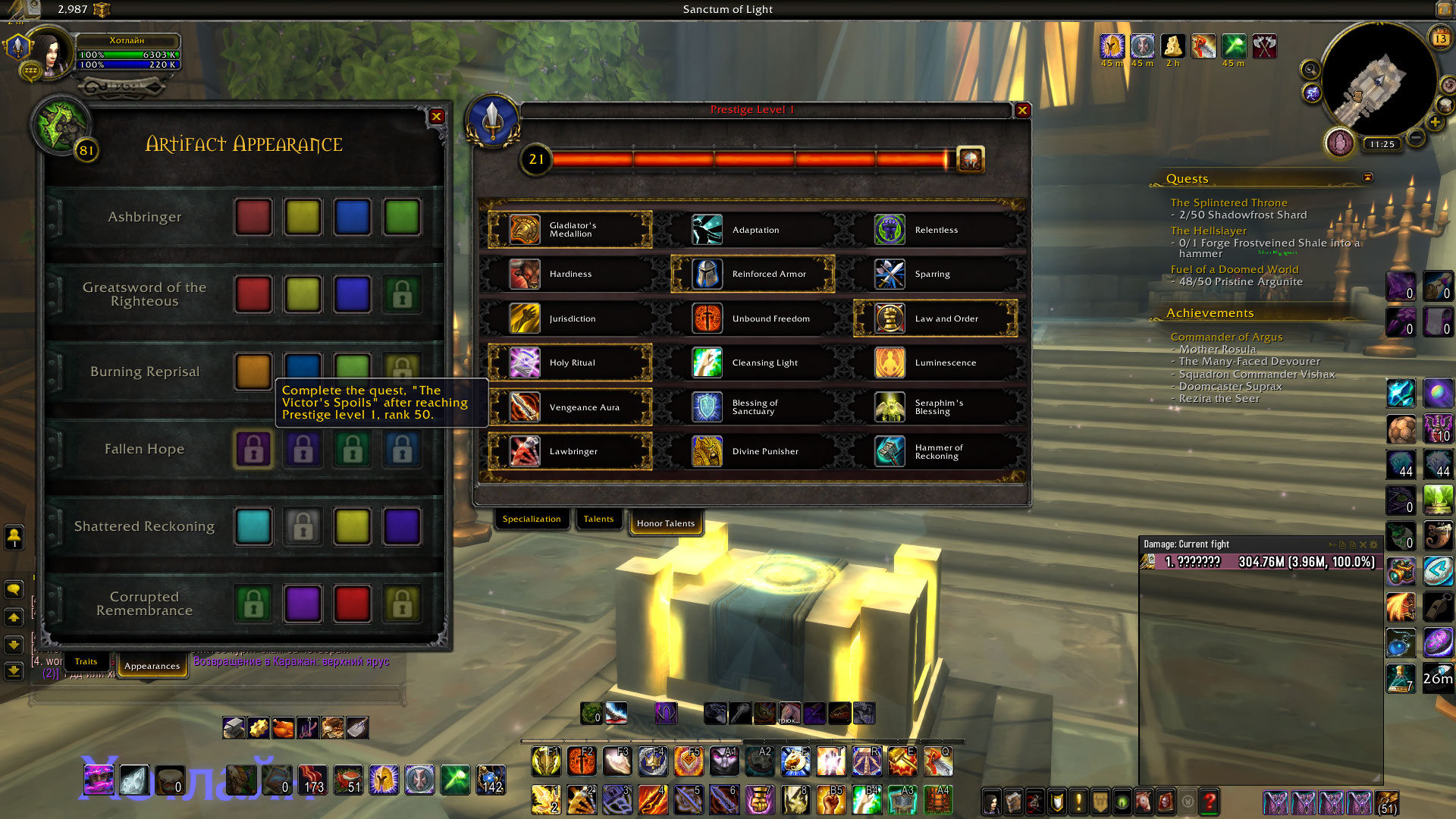 На скрине видно, что у меня есть 1-ый уровень престижа и открыты все PvP-таланты.