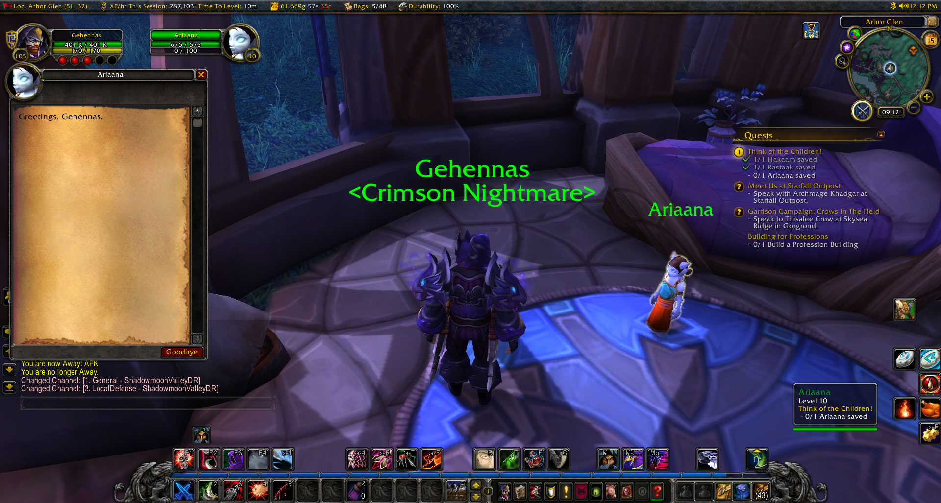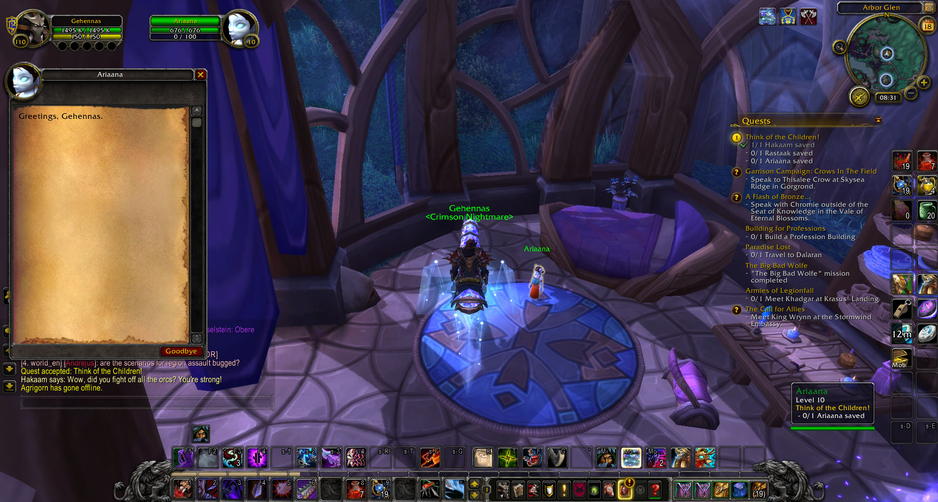 | Description | So, i have a problem in-game with this quest, and the GM told me to create a topic here about it. The thing is, i was doing this quest 'in need of a hero' , which is required for the quest "Think of the Children", which is part of a chain to obtain level 2 garrison. THe problem is, the server crashed after i finished "in need of a hero" and now i can't complete the "Think of the Children", not even in dalaran NPC. | ||||