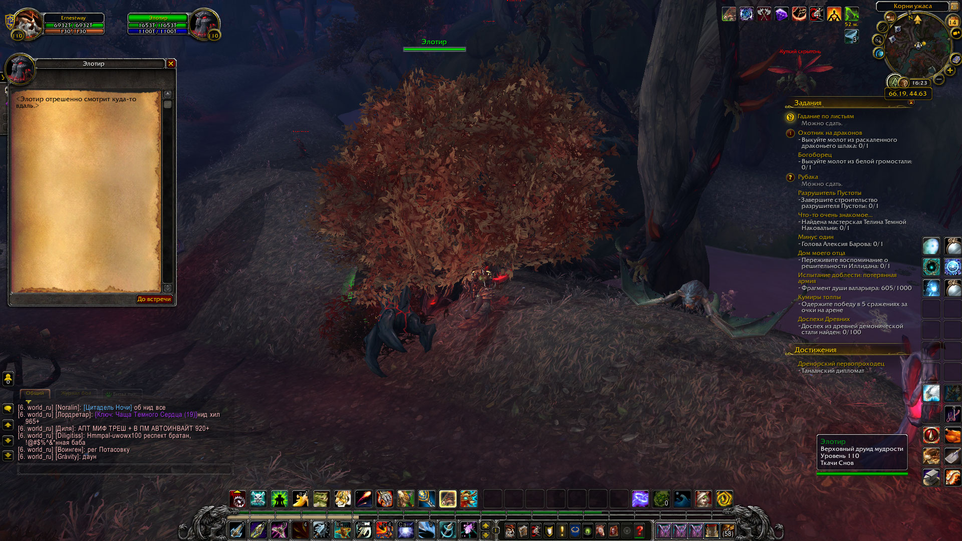 | Description | Невозможно сдать квест https://ru.wowhead.com/quest=38684/гадание-по-листьям. Квест должен сдаваться нипу https://ru.wowhead.com/npc=92783/элотир но значок сдачи квеста находится в другом месте, где еще и нет никаких нипов. | ||||