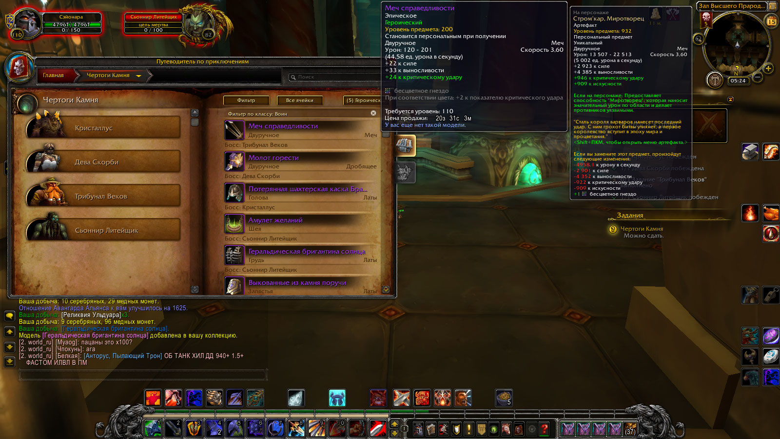 | Description | Столкнулся с проблемой получения трансмога на двуручник-https://ru.wowhead.com/item=37653/%D0%BC%D0%B5%D1%87-%D1%81%D0%BF%D1%80%D0%B0%D0%B2%D0%B5%D0%B4%D0%BB%D0%B8%D0%B2%D0%BE%D1%81%D1%82%D0%B8&bonus=4123#contained-in-object поскольку ОН падает только с сундука-Трибунал веков -но делал в режиме и ГЕР и ОБ Трибунал просто игнорит и НЕ ЗАСЧИТЫВАЕТ и если и возможно потрогать сундук то ОН просто ПУСТОЙ-там нахрен НЕТ НИЧЕГО.на скринах видно что подземелье засчитано кроме ТРИБУНАЛА.Ради чистоты эксперимента делал это уже 4 день кряду -результат один и тот же. | ||||