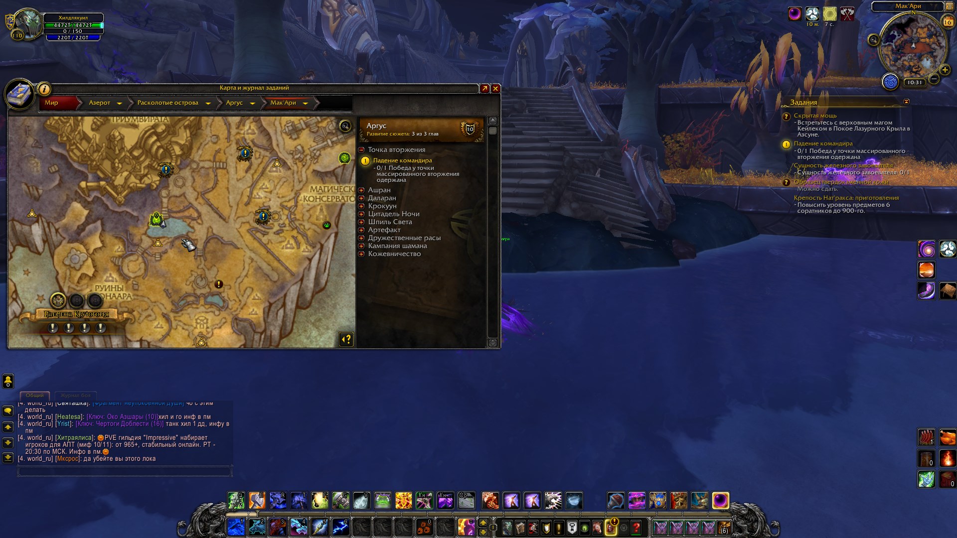 Выполните инструкцию,которую написал Karmadon и скиньте нужные скриншоты. У меня,показывается https://ru.wowhead.com/spell=255510/точки-массированного-вторжения на нужном месте. Если не поможет,будем разбираться дальше |