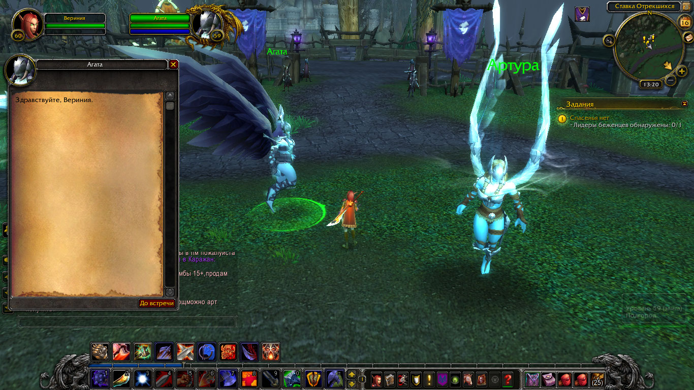 | Description | Взяла квест у Сильваны в Серебряном Бору. Нужно прорваться в Крепость Фенриса с валькирой Агатой, чтобы заставить лидеров крепости подчиниться Госпоже. Но вот какая проблема - валькира со мной не летит. А ведь без этого квеста я не могу начать другой, где Сильвана рассказывает мне свою историю... (для меня лично, как для лоялистки Сильваны, это важно) | ||||