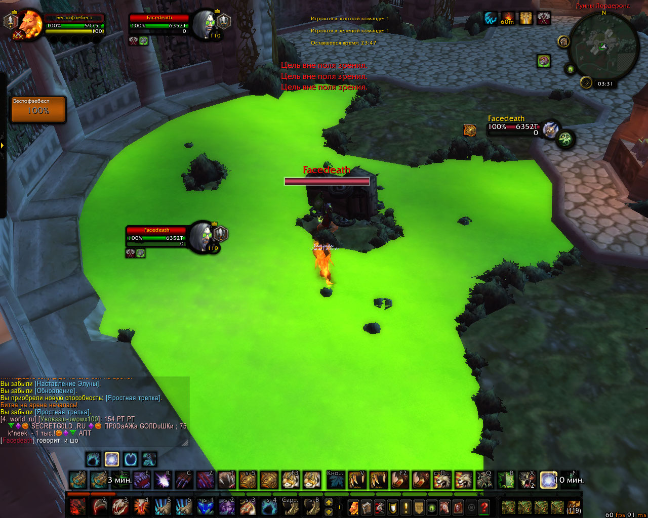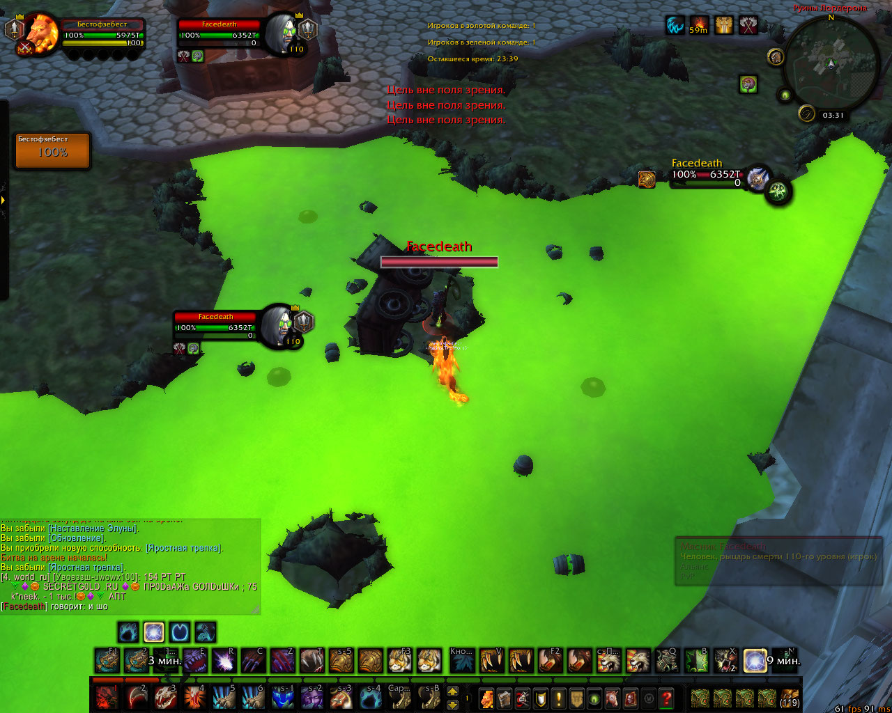 DescriptionТекстура вагонетки на арене Руины Лордерона поломана, что позволяет игрокам заходить в "лос" от противников, тем самым получая преимущество на арене