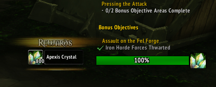 | Description | We don't get a progress after we complete a bonus objective in Tanaan Jungle for https://www.wowhead.com/quest=39526/pressing-the-attack quest. | ||||