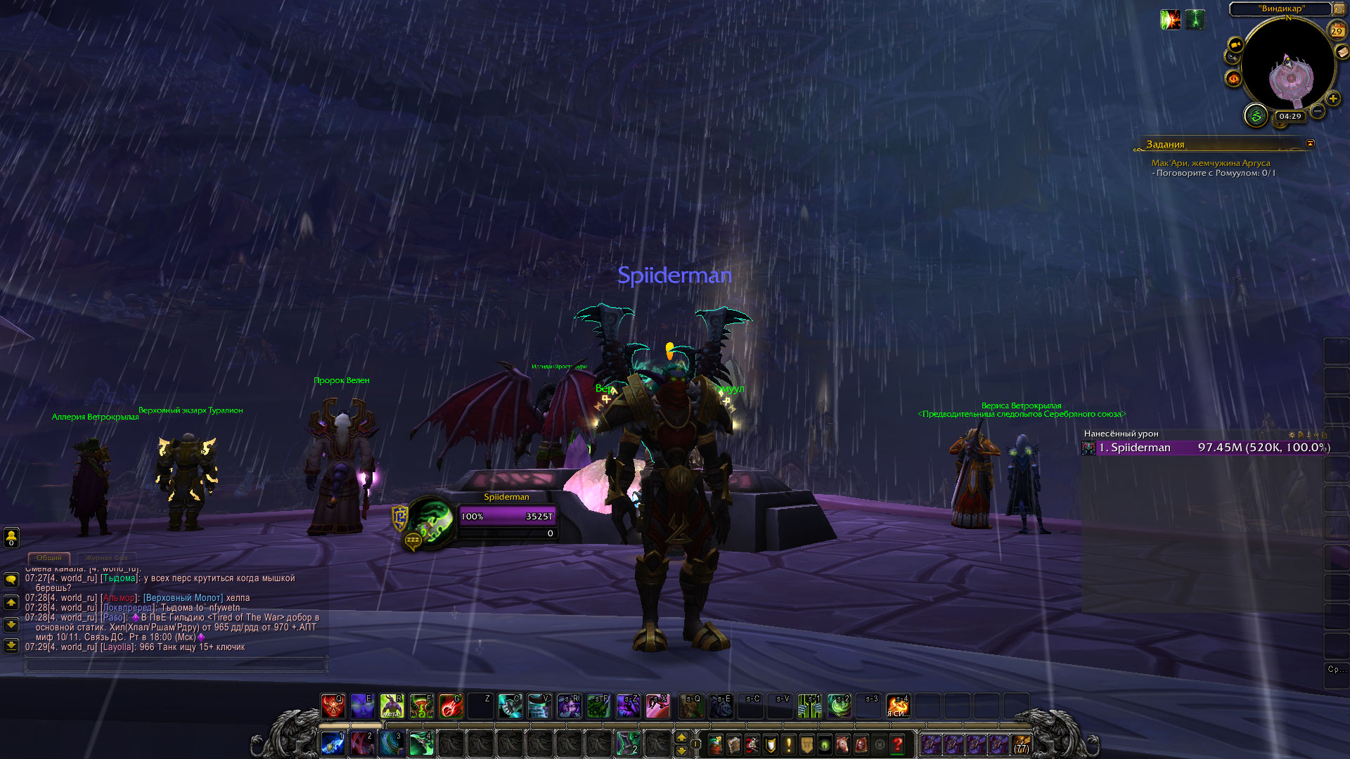 | Description | Дождь это конечно прикольно, траву поливает и освежает, но он уже конкретно так зациклился. Я пытался ему намекнуть своими бесконечными перезаходами в игру и лазенье в настройках, что мне с ним не по пути, но он всегда возращается! Он конкретно везде, на Азероте, на Аргусе, на Вендикаре (ну это совсем наглость). Как ему объяснить что проблема не в нём, а во мне и нам надо прекратить такие близкие отношения. ДОЖДЬ, ЕСЛИ ТЫ ЭТО ЧИТАЕШЬ, ТО НЕ ОБИЖАЙСЯ, НО ТЫ МЕНЯ РЕАЛЬНО ЗАКОЛЕБАЛ) Если просто, то у меня во всех локациях без конца идёт дождь уже как дня 3. | ||||