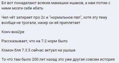 К меня с чисткой лица особо аггресивным индивидуумам проблем нет обычно, покуда они не начинают собираться в стайки. И дело уже далеко не в легах,даже в обосанном об гире без всех пвп талантов и ют с лег для впвп обоссать ранломного прыщелыгу проблем у меня никогба не было на этом сервере. Будь то донатный хрыч или же рандомный мешок нервов которому я просто неугодил своим присутствием. У кого-кого, а у рог больше всего тулкит подходит для впвп, даже с урезанными легами. Про Смит о играть надо в пирате/сабе, а не в двухкнопочном говне, коим мутик и является в этом патче. Чекай пвп логи за 5 6 7 сезон легиона, ассу ты там увидишь разве что в обосанном 2с брекете с хилом, за которого играет инвалид, ибо любой здравомыслящий человек выбирал саба/пирата. Если у тебя проблемв с умервщлением челяди в впвп за рогу, то дело тут не в обрезанных легах или темплейтах, а в прослойке между стулом и клавиатурой. Думаю посыл понятен. Хватит ныть. |