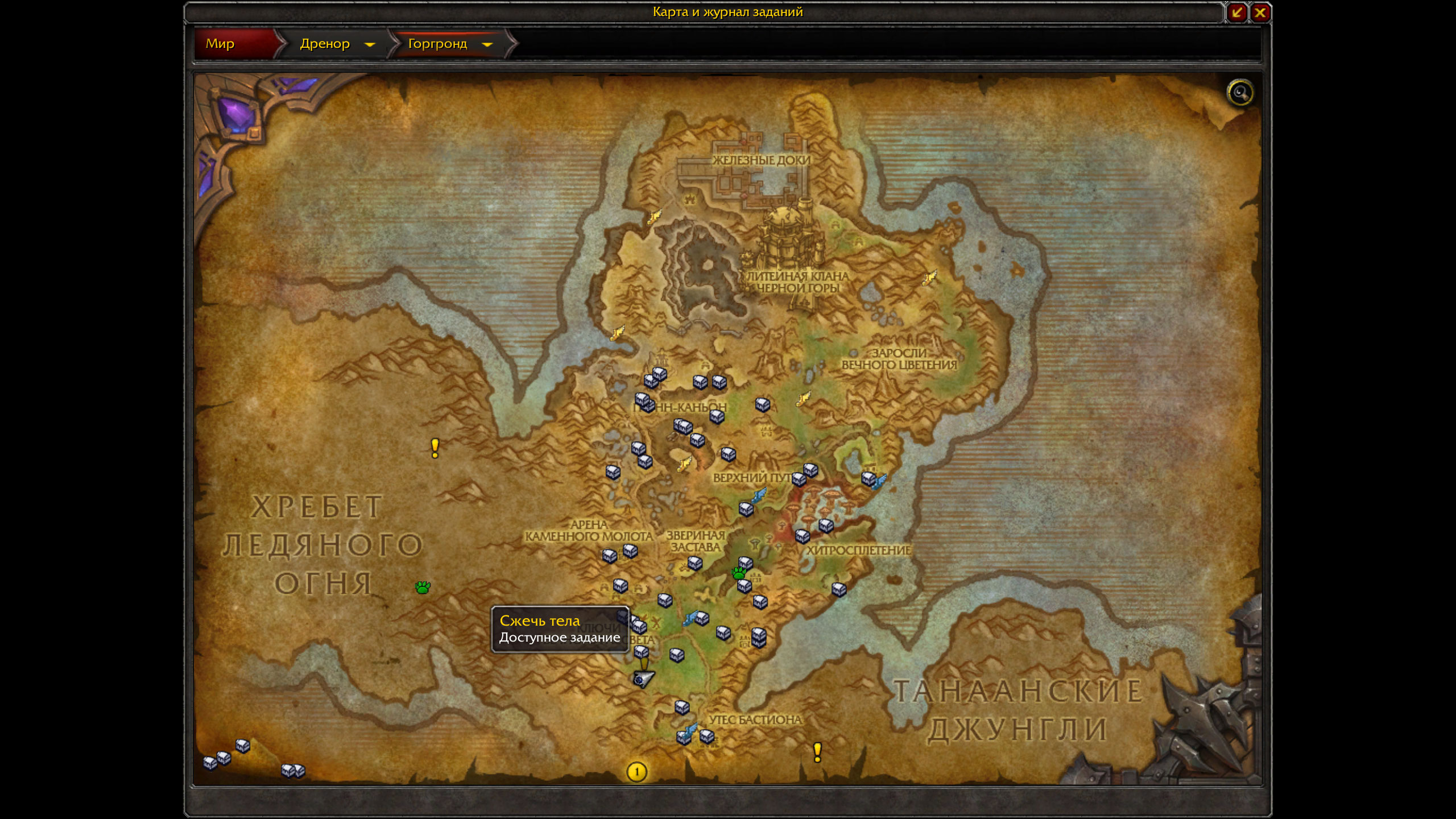 Отправьте, пожалуйста, скриншот с вышеуказанного аддона, со списокм невыполненных заданий в данной локации, чтобы было легче сориентироваться. |