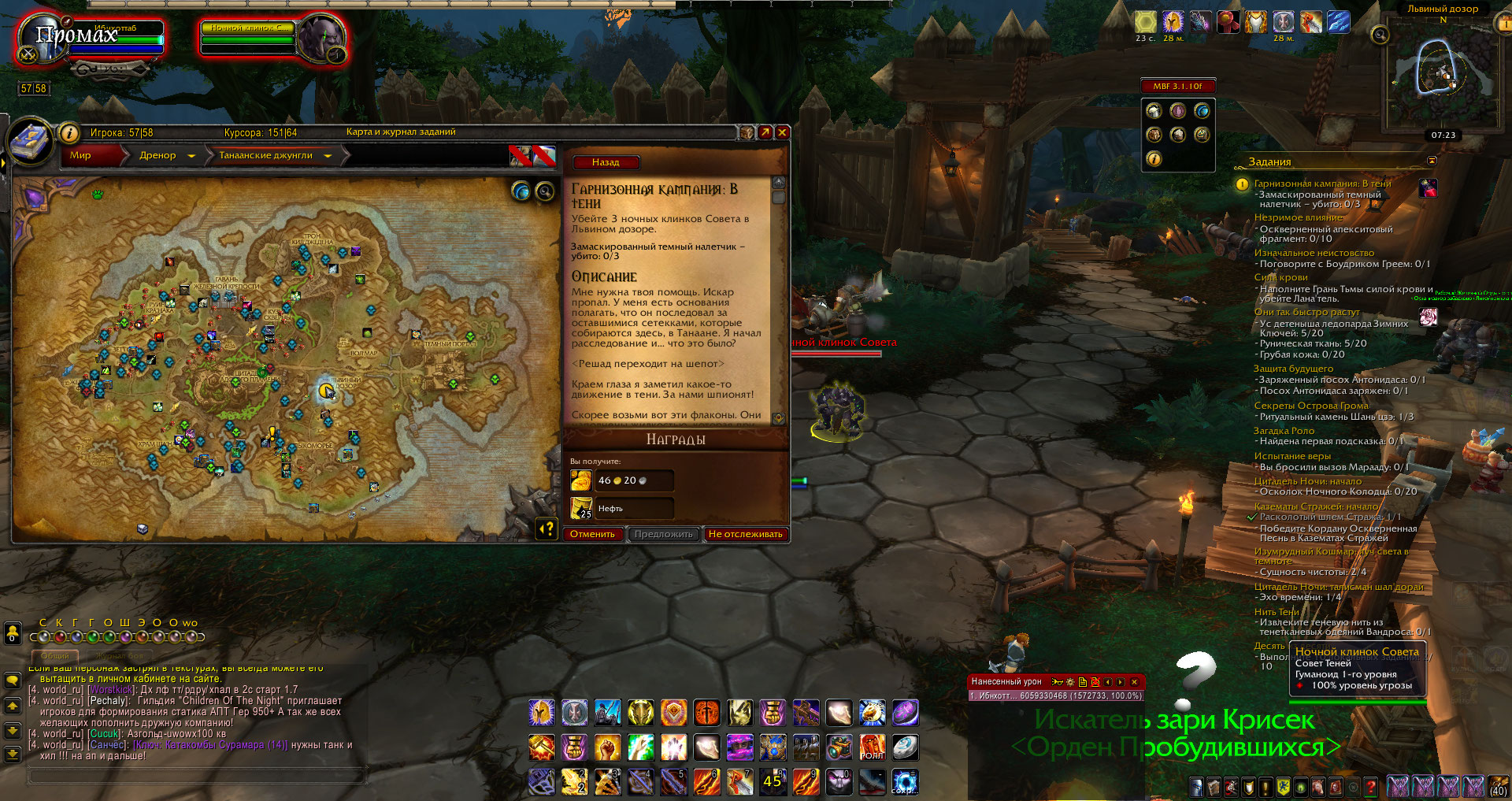 DescriptionПо заданию https://ru.wowhead.com/quest=37687/гарнизонная-кампания-в-тени нужно убить https://ru.wowhead.com/npc=91102/ночной-клинок-совета , но в самом задании почему то указано убить https://ru.wowhead.com/npc=91230/замаскированный-темный-налетчик