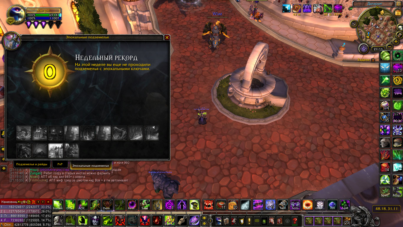 Снова прошел ключ на другом сервере (17 Казематы на Epic x1), в этот раз другим персонажем (Mordagor) и не проходил им больше никаких ключей на той неделе. Оказалось, что баг не визуальный, т.к. в среду сундук не появился, хотя ключ и начал отображаться в недельном рекорде. |