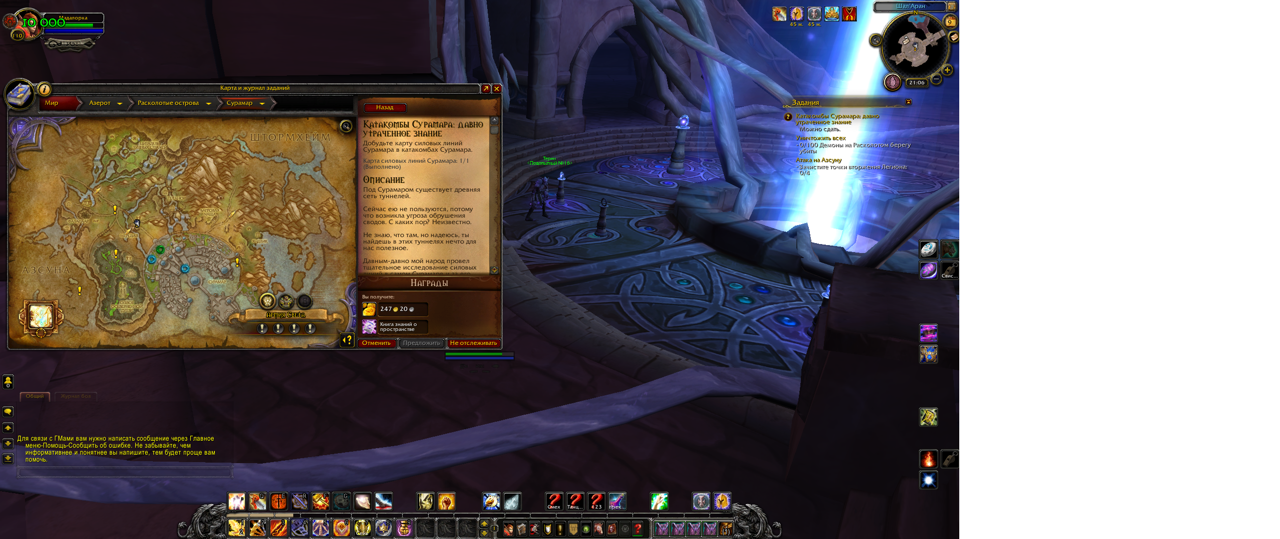 Распаковываете аддон в директорию ../Interface/AddOns/ Запускаете игру, входите на проблемного персонажа Пишете в чат /qt и выбираете раздел "Сурамар" Делаете скриншот каждой цепочки |