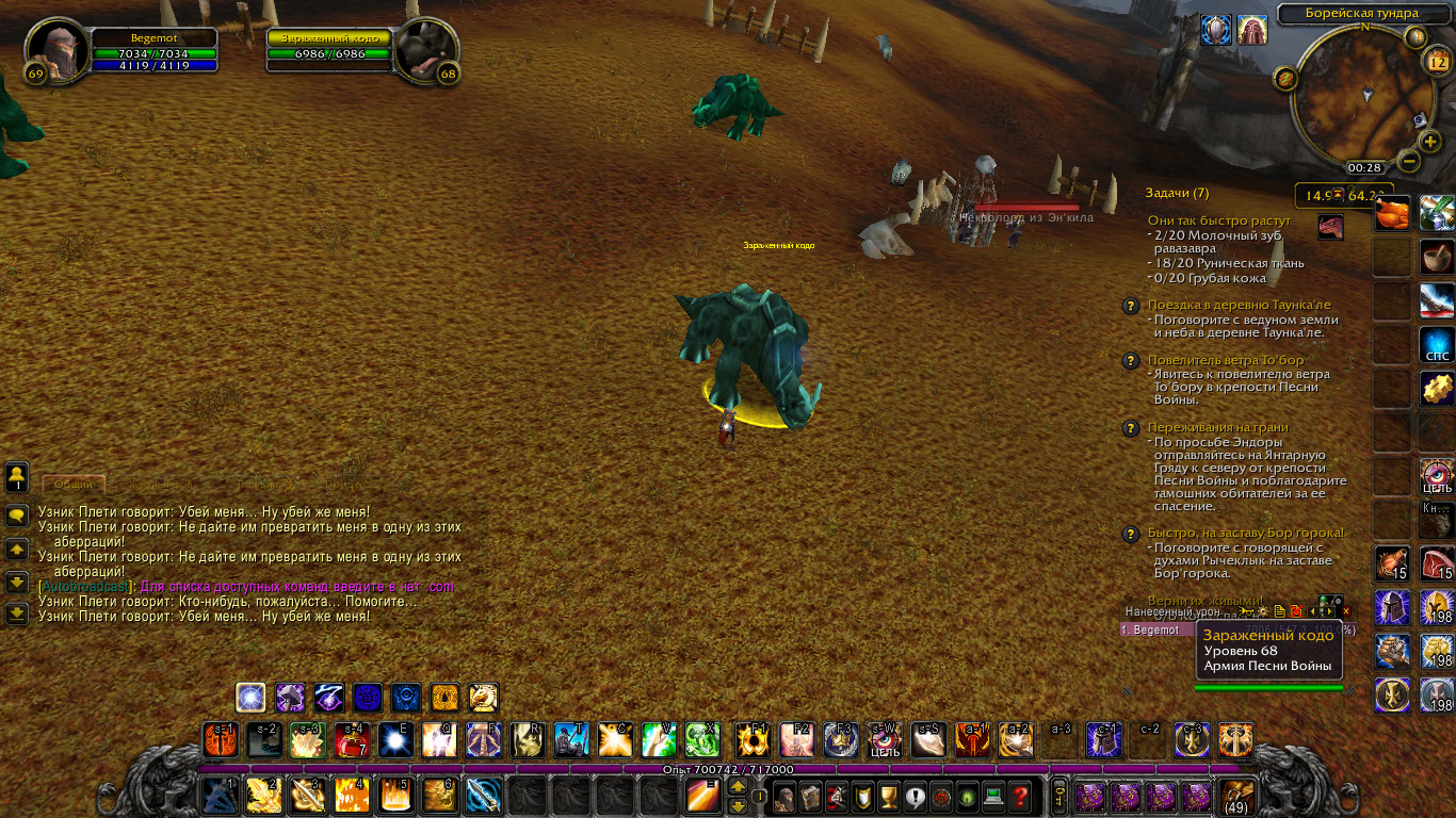 | Description | ник: Begemot лк x5 Квест "Верни их живыми!" 11690 не работает Нельзя сесть в седло "Зараженный кодо" 25596 При нажатии правой кнопкой на кодо, персонаж садится в седло, появляется интерфейс управления транспортом, через секунду, все пропадает, из седла выбрасывает Для квеста выдаётся предмет "Уздечка Торпо для кодо" 34954, при использовании уздечки на кодо, всё то-же самое, выбрасывает из седла через секунду | ||||