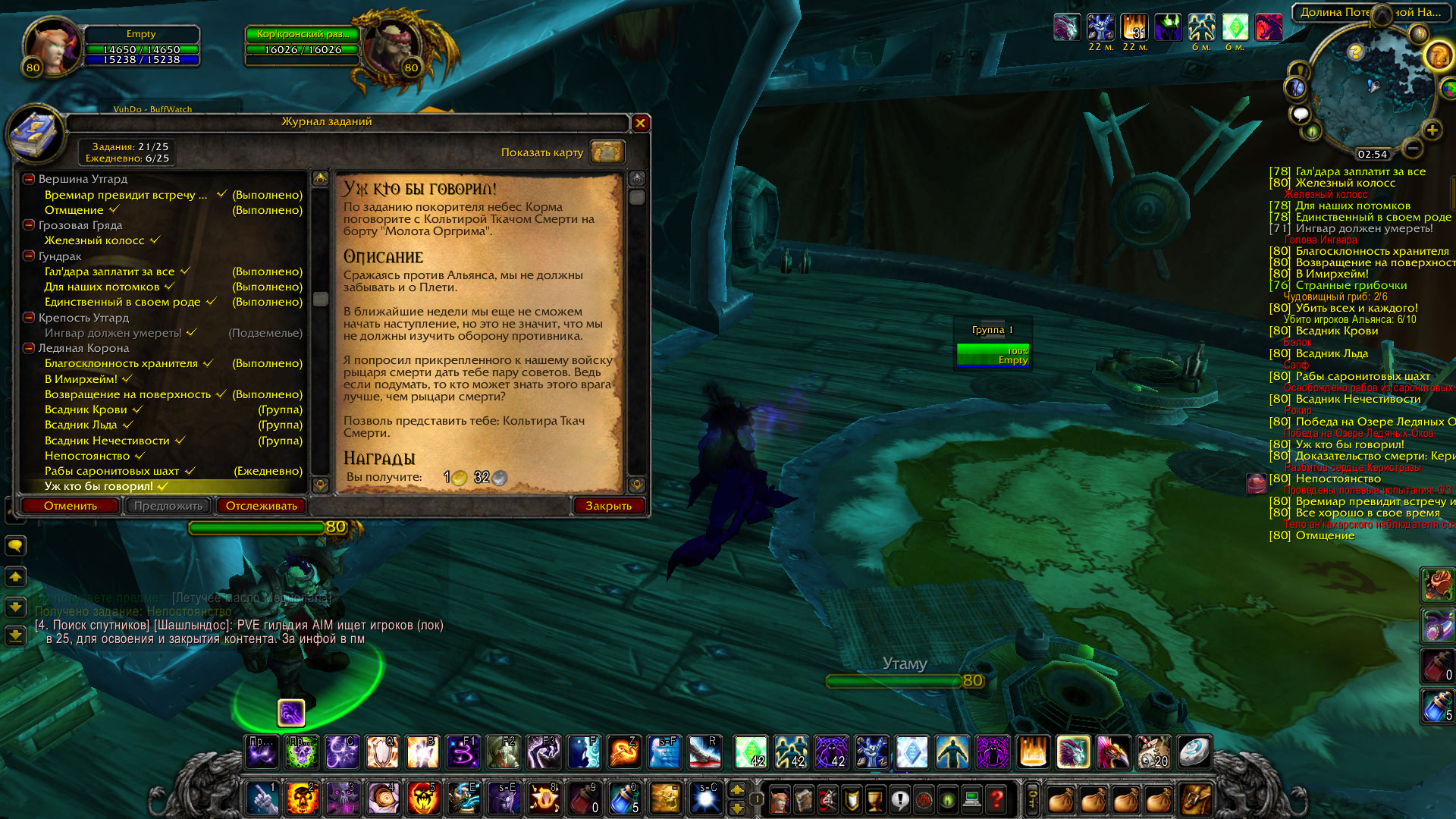 | Description | На корабле Молот Оргрима пропал NPC Кольтира Ткач Смерти Все остальные NPC на судне работают через раз, что бы взять или сдать квест нужно постоянно кликать на нпц, отвечает на команды крайне редко. | ||||