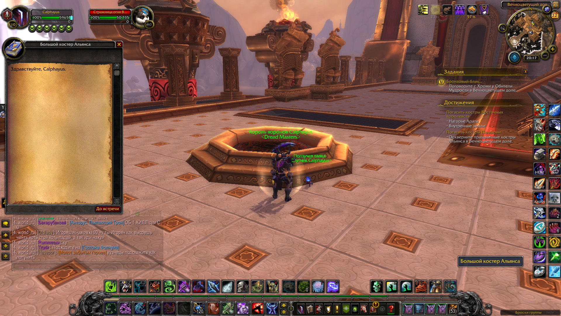 Прошу прощения, квесты альянсовские на вовхеде почему-то, но костры все равно не возможно получить. Возможно где-то стоит несколько квестов в одном костре как в Западном крае? |