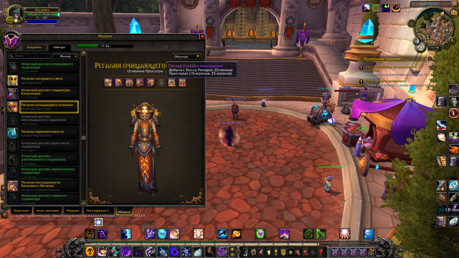 | Description | Задавшись целью собирания трансмога на персонажа и собрав комплект-https://ru.wowhead.com/item-set=1010/%D1%80%D0%B5%D0%B3%D0%B0%D0%BB%D0%B8%D0%B8-%D0%BE%D1%87%D0%B8%D1%89%D0%B0%D1%8E%D1%89%D0%B5%D0%B3%D0%BE-%D0%BF%D0%BB%D0%B0%D0%BC%D0%B5%D0%BD%D0%B8 в 10-25 гер стал собирать в том же рейде но в 10-25 ОБ и столкнулся с ПРОБЛЕМОЙ -а именно -невозможно получить ХОТЬ какойто лут с ласта-https://ru.wowhead.com/npc=52409/%D1%80%D0%B0%D0%B3%D0%BD%D0%B0%D1%80%D0%BE%D1%81 из за баганой механики фазирования босса.Суть бага в следующем-босс дамажиться и преводиться из фазы в фазу обычно из без проблем но в финальной части при остатке ХП в 8-3 миллиона ныряет в лаву после чего БОССА оттуда выдергивают друиды НПС которые появляються на входе на площадку .После чего босс убиваеться и его труп можно облутать.Механика актуальная на сейчас -На 8-3 миллионах ХП босс просто пропадает .Если не добиты треш-адды добиваються и ВСЕ ничего не произойдет-Друиды не появляються босс не возвращаеться.Пробовалось ибивать через крит спелла ШП-Темное сокрушение в том же рейде шмякает по остальным боссам на 18-26 миллионов ХП в этом случае босс визуально пропадет и тоже НИЧЕГО дальше не происходит.как получить ПОСЛЕДНИЙ предмет трансмога а именноhttps://ru.wowhead.com/item=71357/%D0%BE%D0%BA%D0%BE%D0%B2%D1%8B-%D1%81%D0%BB%D1%83%D0%B6%D0%B1%D1%8B-%D0%BC%D0%B0%D0%B6%D0%BE%D1%80%D0%B4%D0%BE%D0%BC%D0%B0#news потому как падают именно с Рагнароса на сложности 10-25 ОБ.Уточните механику убийства может я чтото не та сделал. | ||||