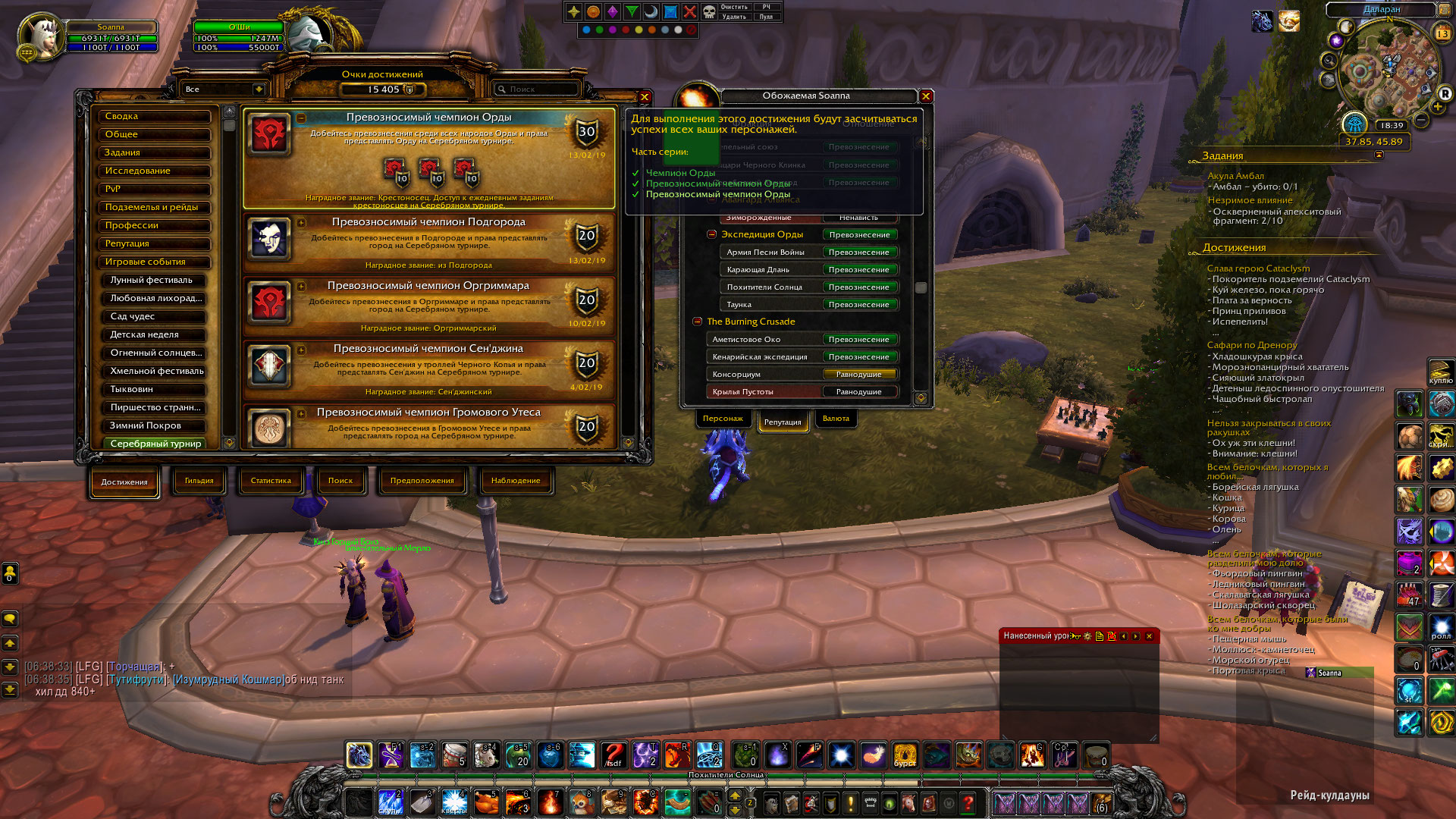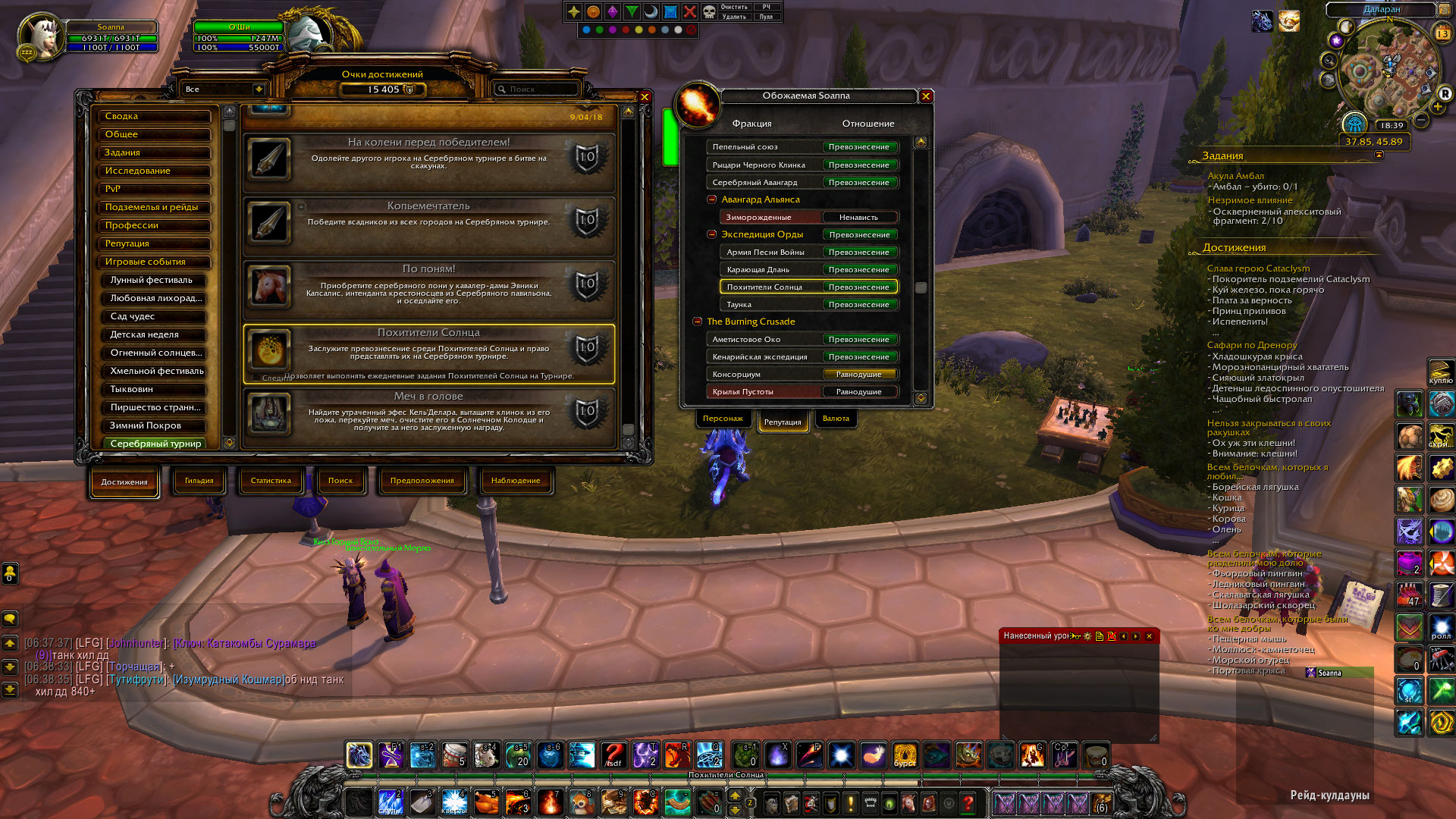 DescriptionПосле получения превознесения с Похитителями Солнца и получением достижения "Чемпион Орды", "Превозносимый чемпион Орды" нет получения ачивы "Похитители Солнца", которые открывают ежедневные квесты в Серебряном Авангарде, и благодаря которым покупаются маунты, петы и т.д.