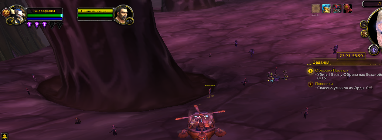 | Additional Information | 1. https://ru.wowhead.com/quest=26144 1.1. https://ru.wowhead.com/npc=42225 стоят просто так, должны быть в клетке 203705 1.2. При нажатии на клетку 203705 они должны делать 2-3 шага вперёд и говорить фразу 42124 - Thank you, $n. Thank you! 42125 - I never thought that I'd be rescued by you, $n! 42126 - I'll make sure to tell Captain Taylor that you're destroying the Hammers in here. 42127 - $n is on the job! I better get back to the captain. 42128 - They're transforming themselves into some kind of super-elemental they call an Ascendant. You gotta stop them, $n! 42129 - I thought I was a goner for sure. Thank you, $n! 42130 - See you on the other side, $g brother : sister;. Which way is out? 42133 - I've been in here for days. They were just about to sacrifice me! Видео: https://youtu.be/Fx8CJ1VN4rk 2. https://ru.wowhead.com/quest=26149 1.1. https://ru.wowhead.com/npc=42234 стоят просто так, должны быть в клетке 203709 1.2. https://ru.wowhead.com/npc=42234 стоят в фазе, нужно убрать фазу 1.3. Entry: 42234, GUID: 159738 - лишний в заселении 1.4. При нажатии на клетку 203709 они должны делать 2-3 шага вперёд и говорить фразу 42150 - I give you thanks, $n. 42151 - I never thought that I'd be saved by you, $n! 42152 - I'll tell Legionnaire Nazgrim that you're destroying the Hammers in here. 42153 - I better get back to Nazgrim. 42154 - They're changing themselves into some kind of super-elemental they call an Ascendant. You must stop them, $n! 42155 - I thought I was dead for sure. Thanks, $n! 42156 - See you outside, $g brother : sister;. Is that the way out? 42157 - I've been in here for days. They were about to sacrifice me! Видео: https://youtu.be/dPeKKDSTkRo Триггеры 42213 и 42214 не должны быть видны | ||||