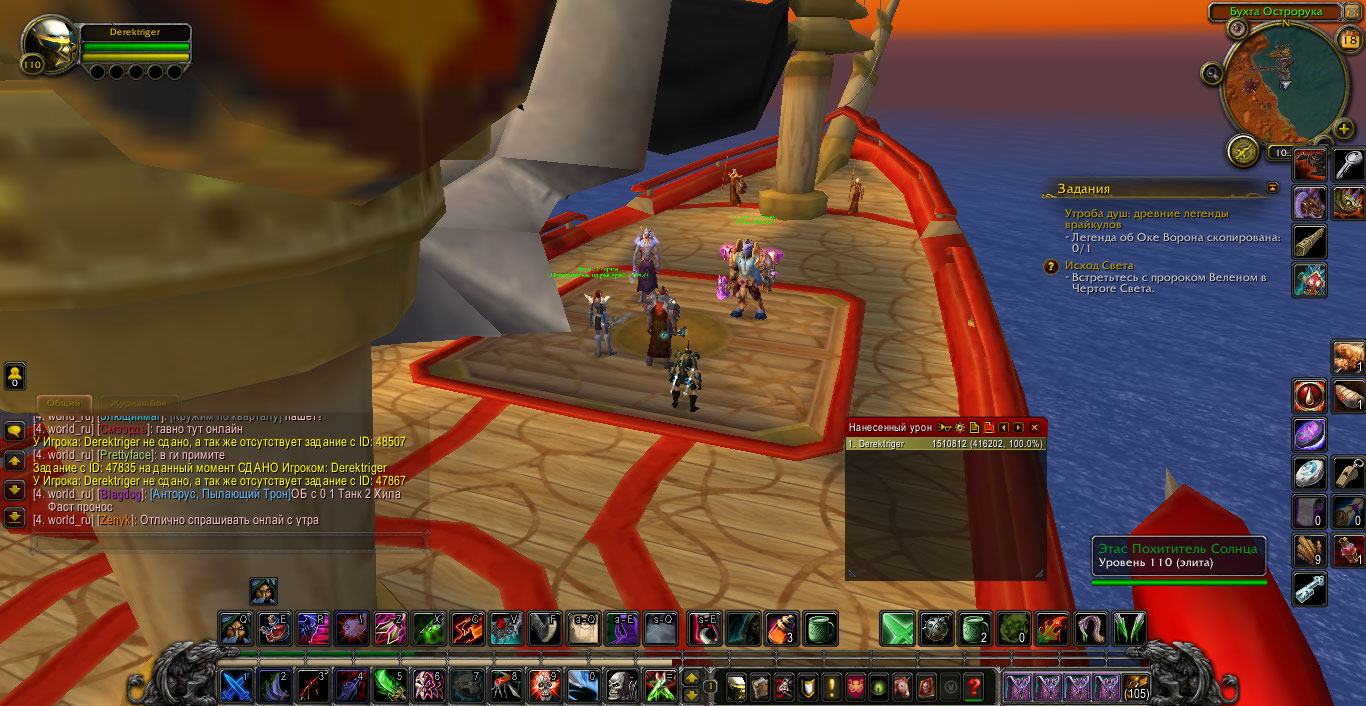 Ткните в ссылку квеста в комментарии Eurus. Справа Вы увидите последовательность квестов, в том порядке, в каком они должны выдаваться. Отмените квест Исход Света. Выйдите из игры, почистите кеш, сделайте исправление персонажа в личном кабинете. Зпйдите в игру. Если у Лиадрин нужный квест не появится - пишите на форум forum.uwow.biz в тему http://forum.uwow.biz/topic/280469-problema-s-hranitel-mudrosti-legion-kvestami-na-r/ Обратите внимание - (текст с форума) Важно! Шаблон для оформления вашего поста: Ник игрового персонажа. Ссылка с http://ru.wowhead.com/ на проблемный квест (обязательно) Описание сложившейся ситуации. Скриншоты подтверждения ваших слов. Их следует загружать на http://egammi.net/ и прикреплять к сообщению ссылками. ВАЖНО! Мы не оказываем помощь по постам, оформленным некорректно! Мы удаляем посты игроков, которые оффлайн 7 дней и более! |