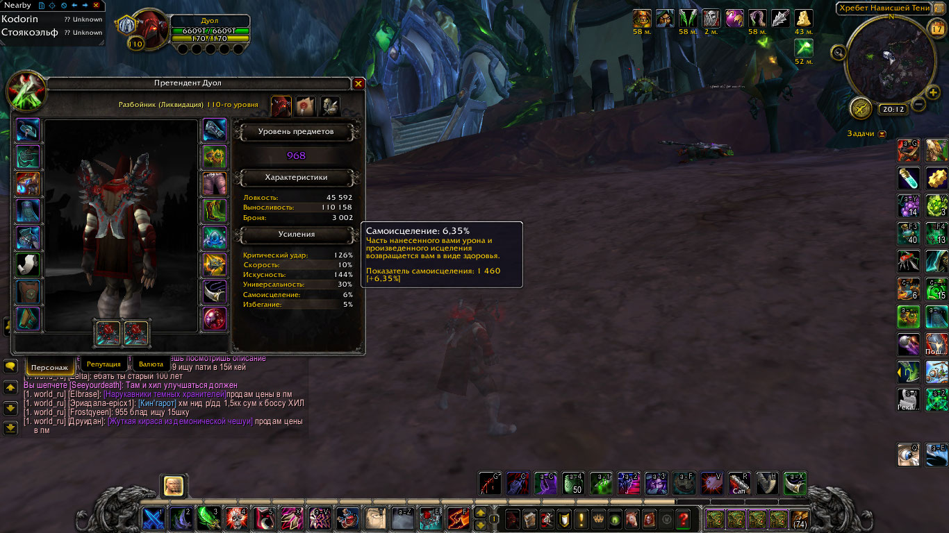 https://www.warcraftlogs.com/reports/V9WC26RqHnd4FAzX#fight=2&view=replay&position=497 - позиция роги https://www.warcraftlogs.com/reports/V9WC26RqHnd4FAzX#fight=2&type=healing&source=7&view=events&start=759802&end=774017 - отхил https://www.warcraftlogs.com/reports/V9WC26RqHnd4FAzX#fight=2&type=damage-done&source=7&view=events&start=763065&end=776261 - дамаг Видно что рога на 9:15 отбегает от босса и перестает бить, последний тик https://www.wowhead.com/spell=195452/nightblade проходит на 9:18.9, последний тик самоисцеления 9:19.5(от дотки). В период с 9:19 до 9:24 самоисцеление не прокает, хотя фиал висит и отхиливает рогу. Закрываю |
