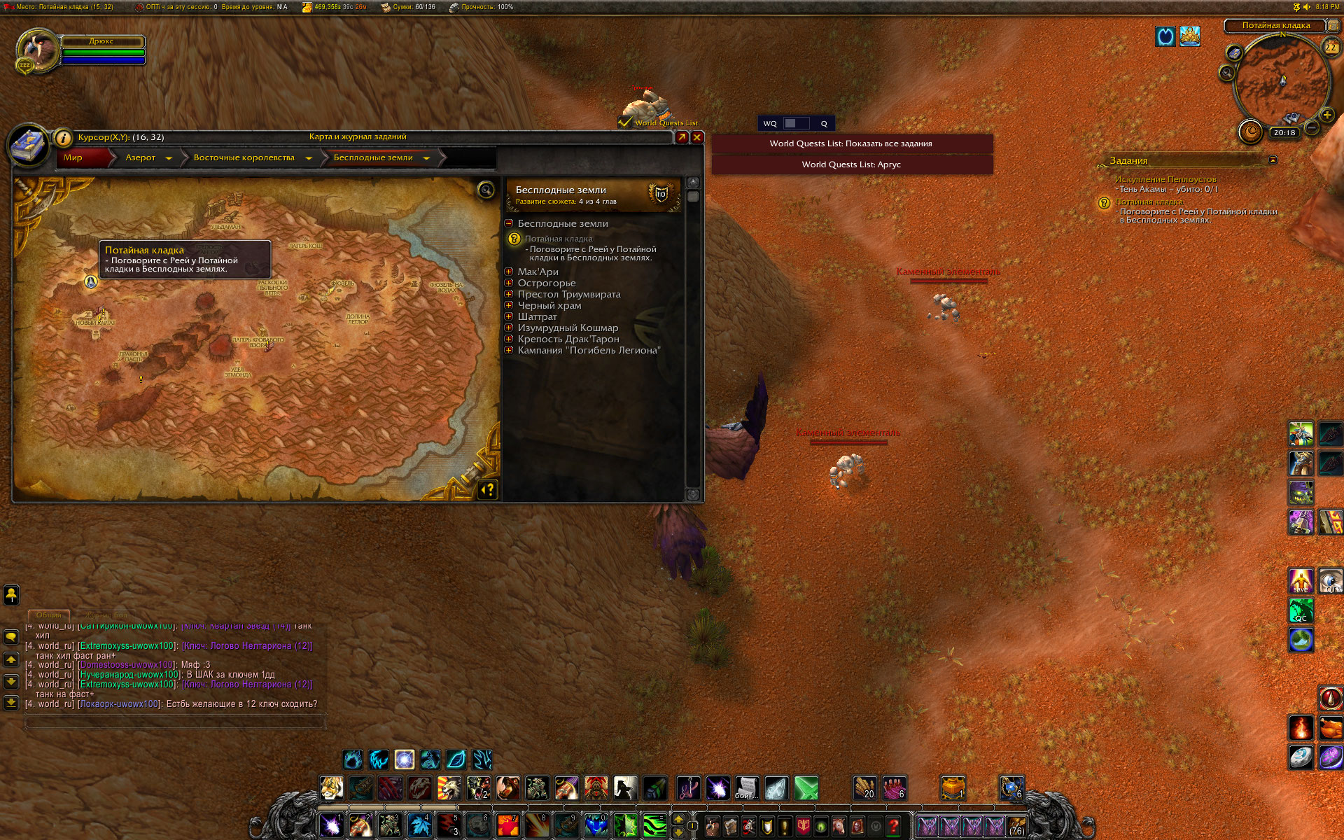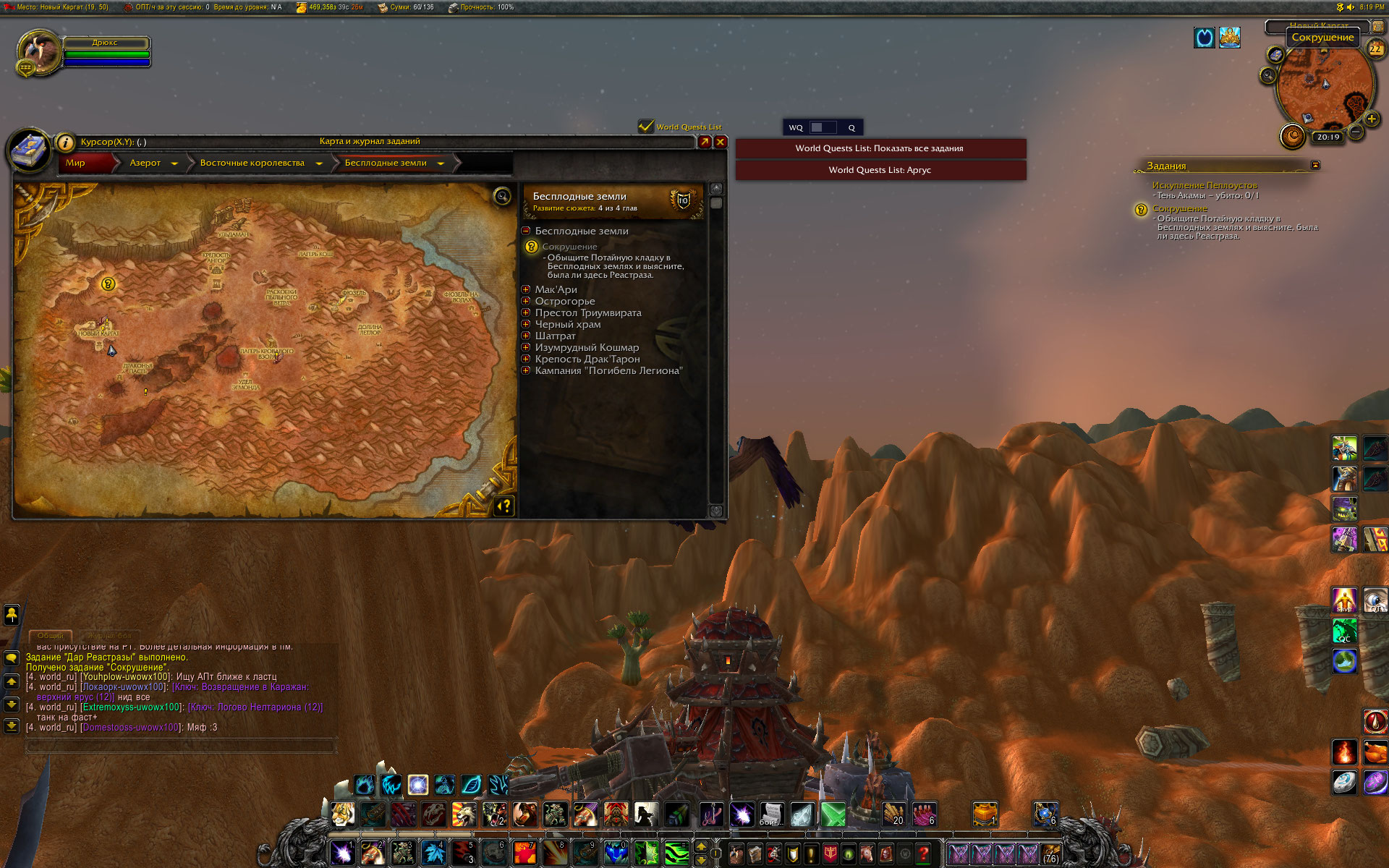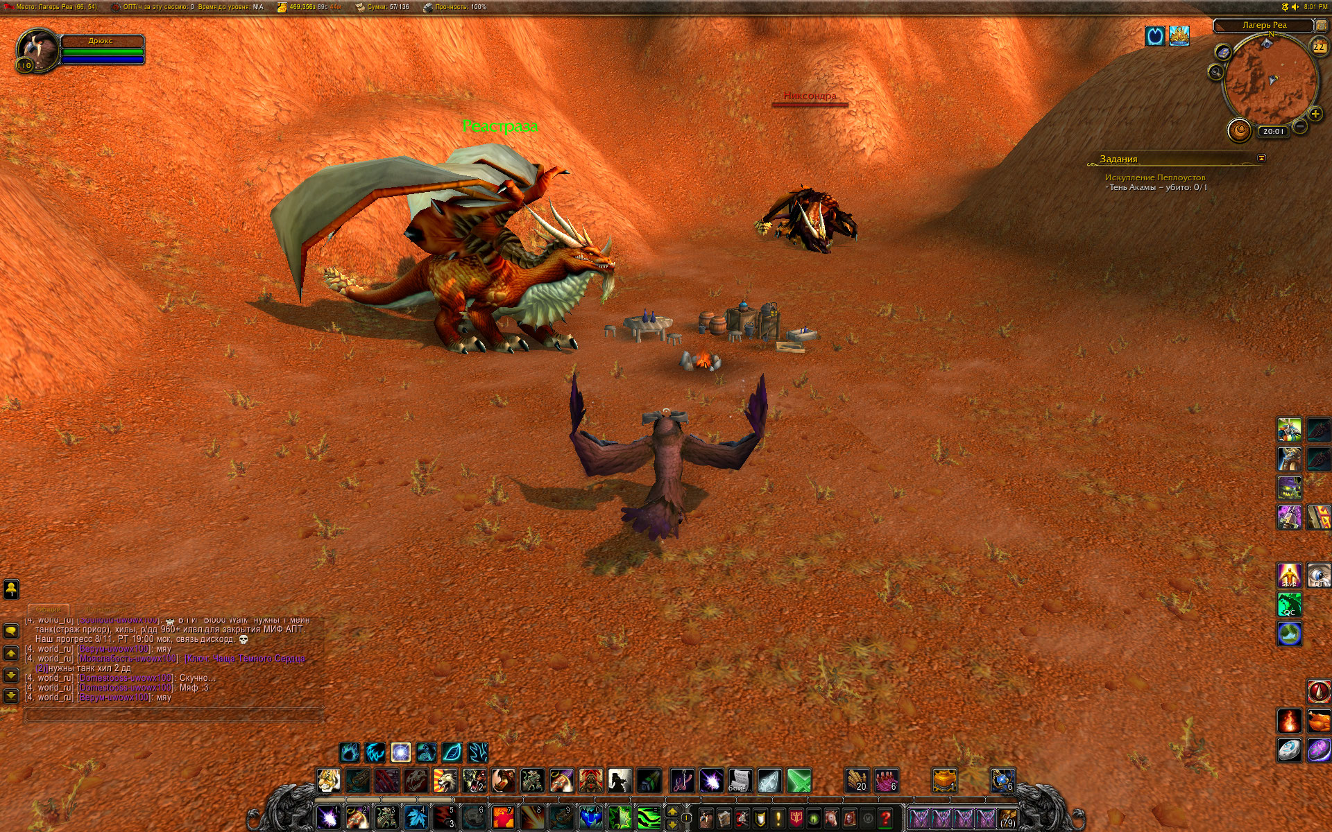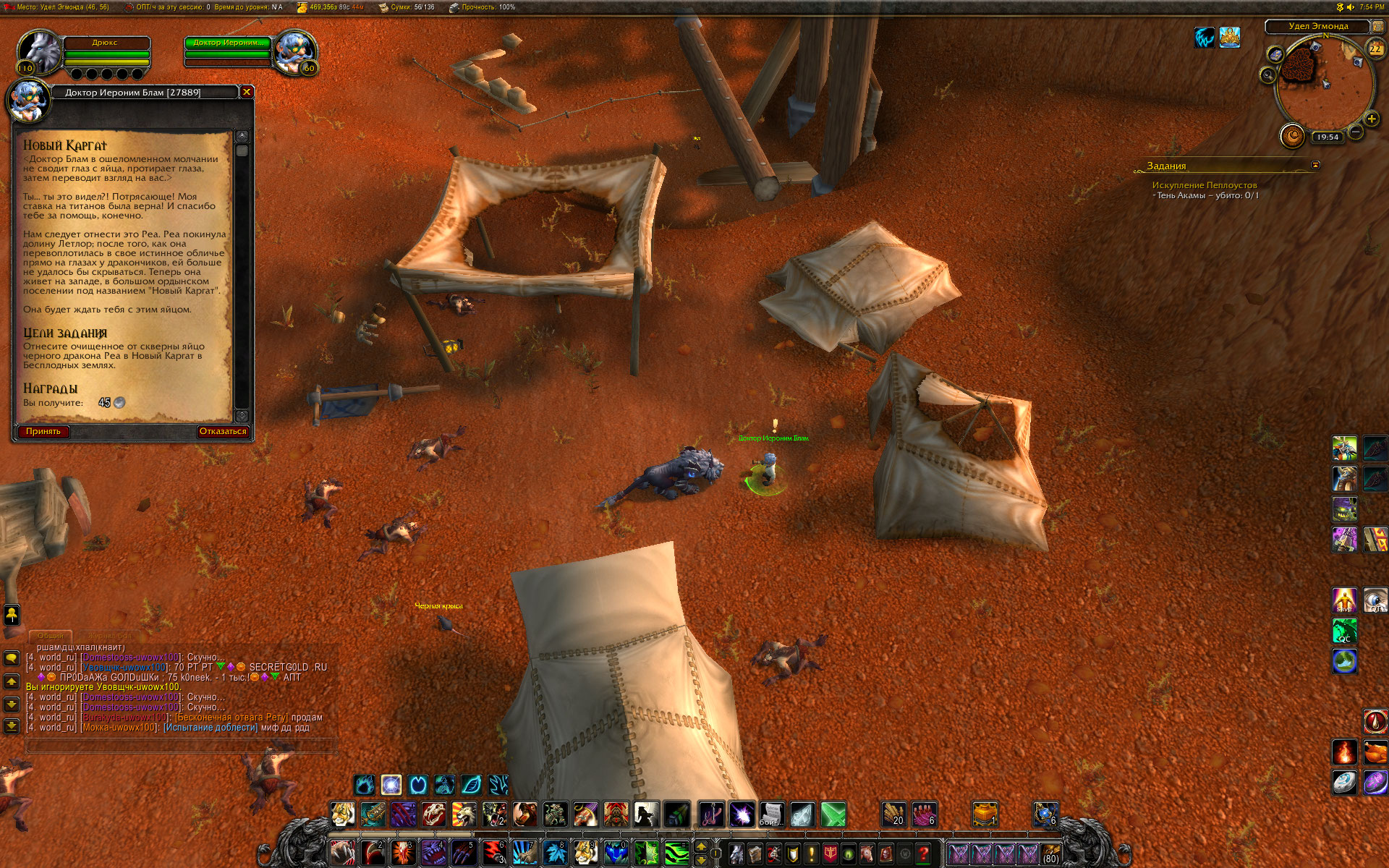 Вы уж меня простите, Mirage24 , но небольшой разбор полетов я просто обязан провести. Первое - скриншот из http://tracker.legionbugs.com/view.php?id=11716#c34100 - Реа на том месте по сюжету превращается в Реастразу, что видно на одном из моих скриншотов. Далее. Квест Новый Каргат согласно вовхед должен выдаваться нпс в северо-западной части локации, у нас квест выдается нпс сразу после предыдущего квеста и там, где это показано на скриншоте. Скорее всего на вовхеде смесь из старых, доКатовских квестов и новых. В тултипе квеста указано, что встретиться с Реа нужно в Новом Каргате. С этим Вы согласились. Очень хорошо. Но дело в том , что Ваш совет выдвигаться к Реа в лагерь Альянса персонажем Орды .... мягко говоря не совсем корректен. В двух шагах от Реа там стоит смотритель полетки 100 уровня и несколько нпс 45-46 уровня. То есть на актуальном 40-50 уровне забегать в лагерь противоположной фракции совершенно неразумное действие. Далее. По непонятной причине на нескольких квестах цепочки активирован режим автоматической сдачи квеста "на месте", кнопка завершить квест появляется, но чтобы взять следующий квест у Реа, требуется снова и снова возвращаться в лагерь противоположной фракции. Далее. Квест, последующий за квестом Новый Каргат, а именно https://ru.wowhead.com/quest=27890 , открывает доступ к трем квестам у НПС в таверне к следующему по списку квесту https://ru.wowhead.com/quest=27891 и к еще двум квестам https://ru.wowhead.com/quest=27892 и https://ru.wowhead.com/quest=27893 . Но одна проблема в том, что по любому из квестов персонажу выдается спутник-питомец, с помощью скиллов которого надо выполнить критерии квеста. И все три квеста можно взять, но сопровождать персонажа может только один питомец. Если квесты отменить, то повторно они уже не выдаются, если их не взять до того, как будет сдан первый из тройки квестов - квесты пропадают у НПС-квестодателей. К счастью, сделаны два оставшихся квеста или нет - это не влияет на получение достижения хм в локации. Квесты https://ru.wowhead.com/quest=27897 и https://ru.wowhead.com/quest=27898 также отсылают в зону Потайная кладка, но естественно, Реи там нет. Поэтому приходится или сдавать квесты автоматом и возвращаться в лагерь Альянса или сдавать их Рее на месте сразу после получения. И вишенка на торте - финальный квест дает удвоенную награду в виде двух уникальных тринкетов, одеть можно только один, второй на продажу. |