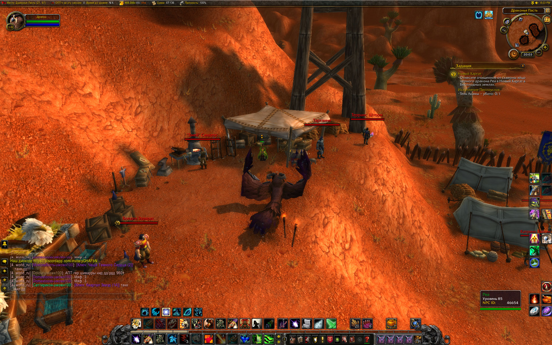 Mirage24 -- Проверьте, тут должен быть нпс http://egammi.net/image/Se8b Это вариант Альянса. там она действительно есть и за Альянс достижение можно получить (что я и сделал в конечном итоге - завел чара за Альянс для ХМ) За Орду Реа должна стоять в Новом Каргате (по идее и по логике квеста), но там ее нет. Вы ранее дали расположение Реа, совпадающее с Вовхедом для Орды, но гнетут меня смутные сомнения, что там можно будет сдать. Во всяком случае, чар за Орду, на котором цепочка ХМ оборвалась именно на этом квесте никуда не делся, зайду, посмотрю. |