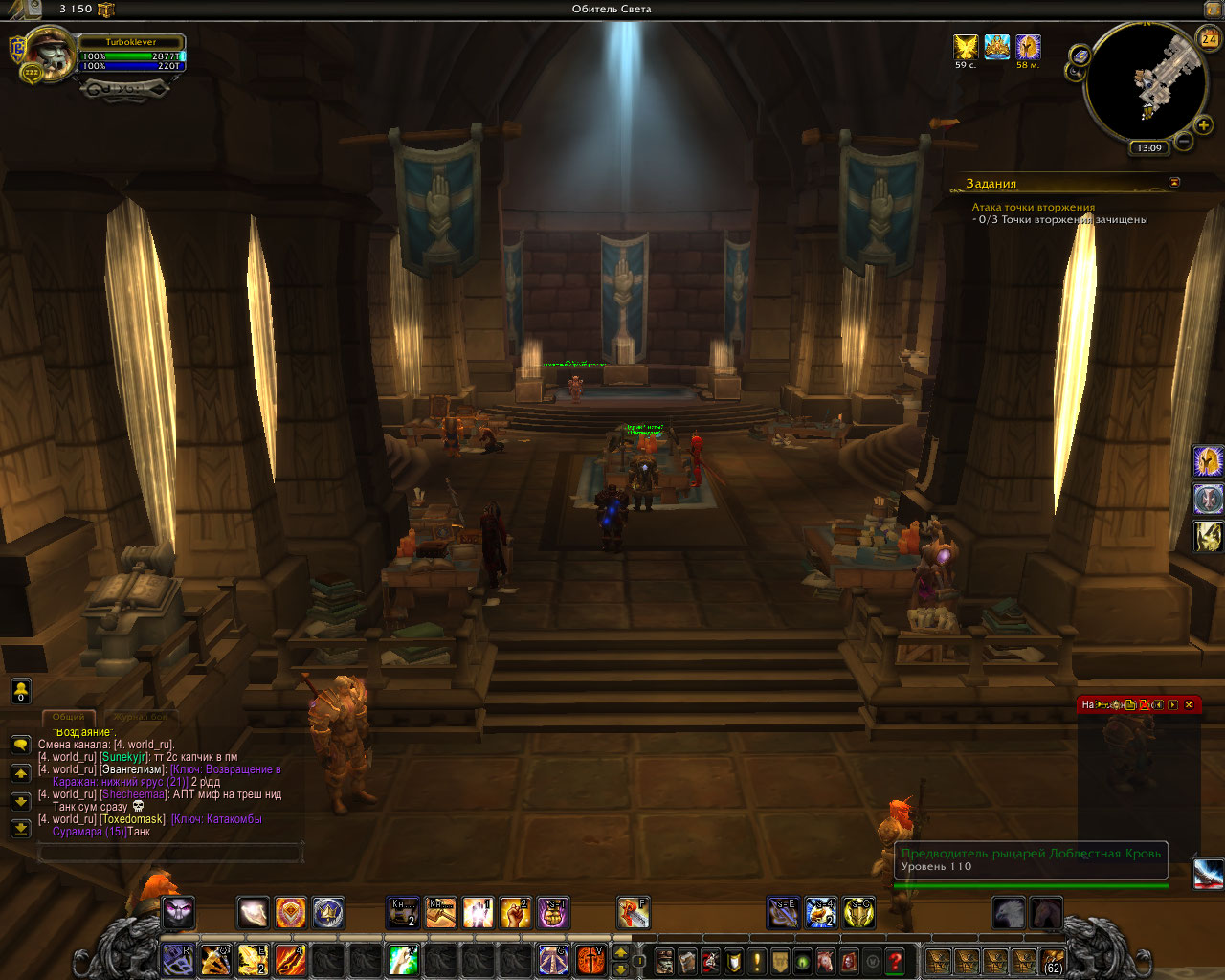 Кто пропавший? непись или квест? Или так квест называется? ссылка с вовхеда сразу ответила бы на все вопросы. если ищется https://ru.wowhead.com/quest=38576/%D0%B2%D1%81%D1%82%D1%80%D0%B5%D1%87%D0%B0-%D0%B2-%D1%81%D0%B2%D1%8F%D1%82%D0%B8%D0%BB%D0%B8%D1%89%D0%B5 то надо искать не в оплоте, а в Даларане, на полщадке Краса. Рядом с полеткой должен стоять Тиросс и выдавать квест. Если отменили - ищите там. Второй вариант - поискать Тиросса на расколотом берегу, на острове гарпий. Там, где убивали Балназара и получали артефакт. А сам процесс выполнения лучше построить так: через портал в центре Даларана прыгнуть к Даларанскому кратеру в Восточные королевства, затем на летающем маунте (или воспользоваться полеткой, если открыто) долететь до Восочных чумных земель и ножками спуститься в подвал под часовней. Тогда там внутри все переключится в режим выполнения этого квеста. Другой вариант - прыгнуть порталом в оплот , выйти из оплота и покинуть локацию "Часовня последней надежды", затем ногами вернуться в оплот. Тоже может сработать (теоретически). Если для Вас НПС не выдает квест или его нет - сделайте скриншоты этого места (полетка в Даларане или остров гарпий) где видно что квеста нет. И сделайте скриншот журнала квестов в развернутом виде (та, часть что имеет отношение к оплоту, чумным землям и артефакту) Еще для проверки возьмите себя в таргет и введите по одной в чат команды .q s 38576 .q s 42811 .q s 42812 |