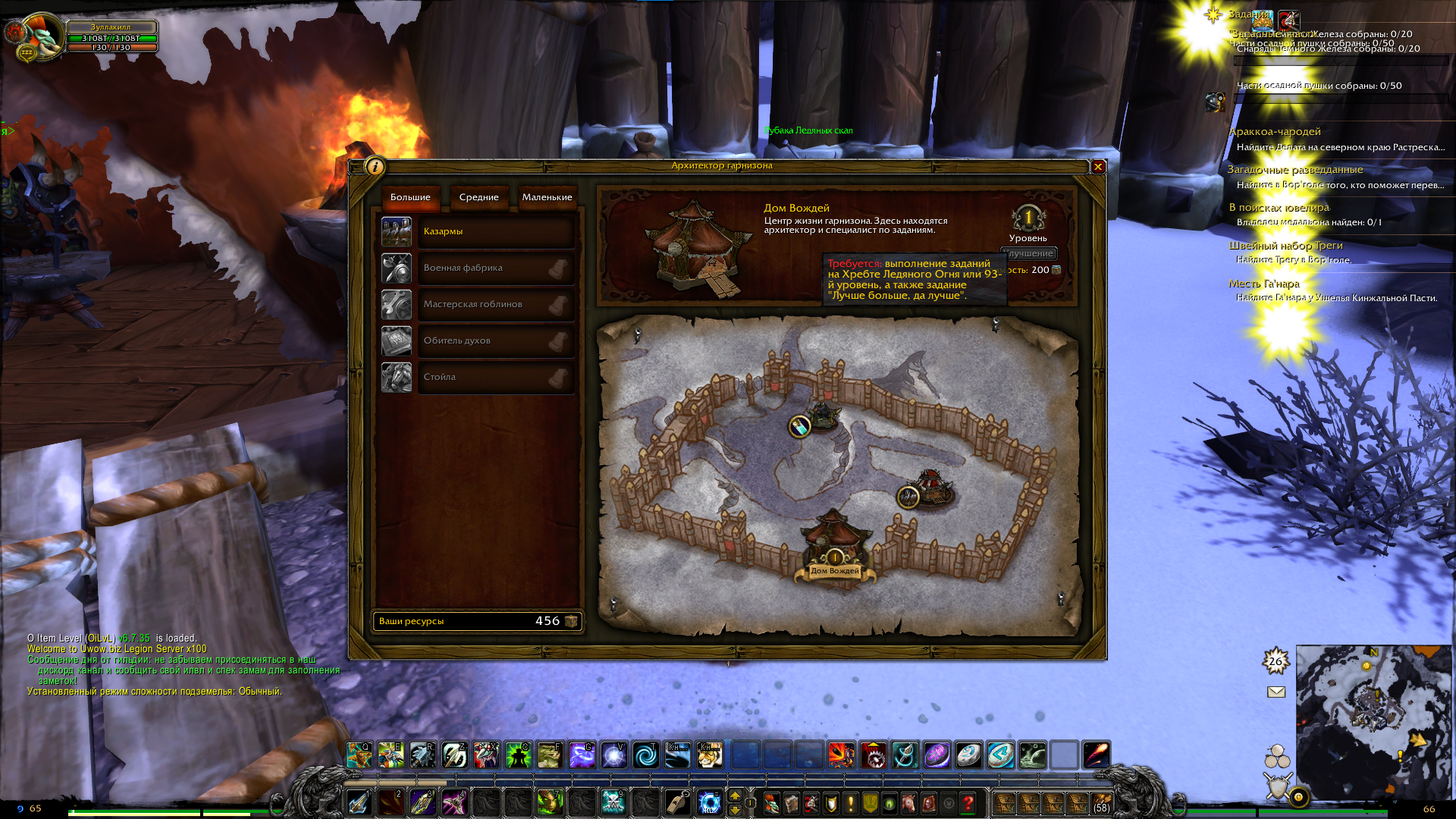 ну не срабатывает подсказка из тултипа на улучшение - таки надо добивать сюжетку стартовой локации. Единственное, что поможет подсократить процесс сейчас - в сюжетке есть момент, когда персонаж возвращается в гарнизон для встречи с Дуротаном. Вот вроде бы на свежесозданном гарнизоне можно в этот момент получить квест у Газлоу и повысить уровень гарнизона. Но получилось у меня не на всех чарах с вроде бы одинаковыми исходными. Поэтому и предложение добить сюжетку до достижения - и все равно она нужна для потом, развитие гарнизона завязано на действия , поступки и подвиги (не побоюсь этого слова) которые случаются в процессе дальнейшего прохождения сюжетки. Полеты опять же - это как минимум ХМ Дренора. Чертежи для зданий - некоторые достижения и куски сюжетки. Репутация с черепом начинает качаться с квестов сюжетки далеко не в Скалах кстати. а несколько позже. Все взаимосвязано, почти все моменты очевидны, кроме некоторых. Так что желаю Вам Всё! |