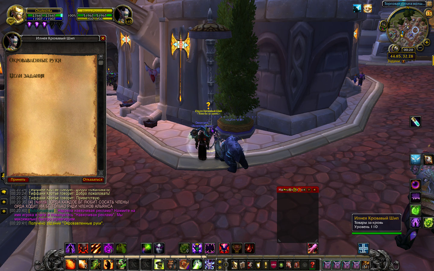 | Description | Не работает квест "Окровавленные руки". он должен сдаваться после взятия и открывается окошко для покупки реагентов за кровь саргераса. но теперь предлагается только взять кв. возможность его сдать нет. | ||||