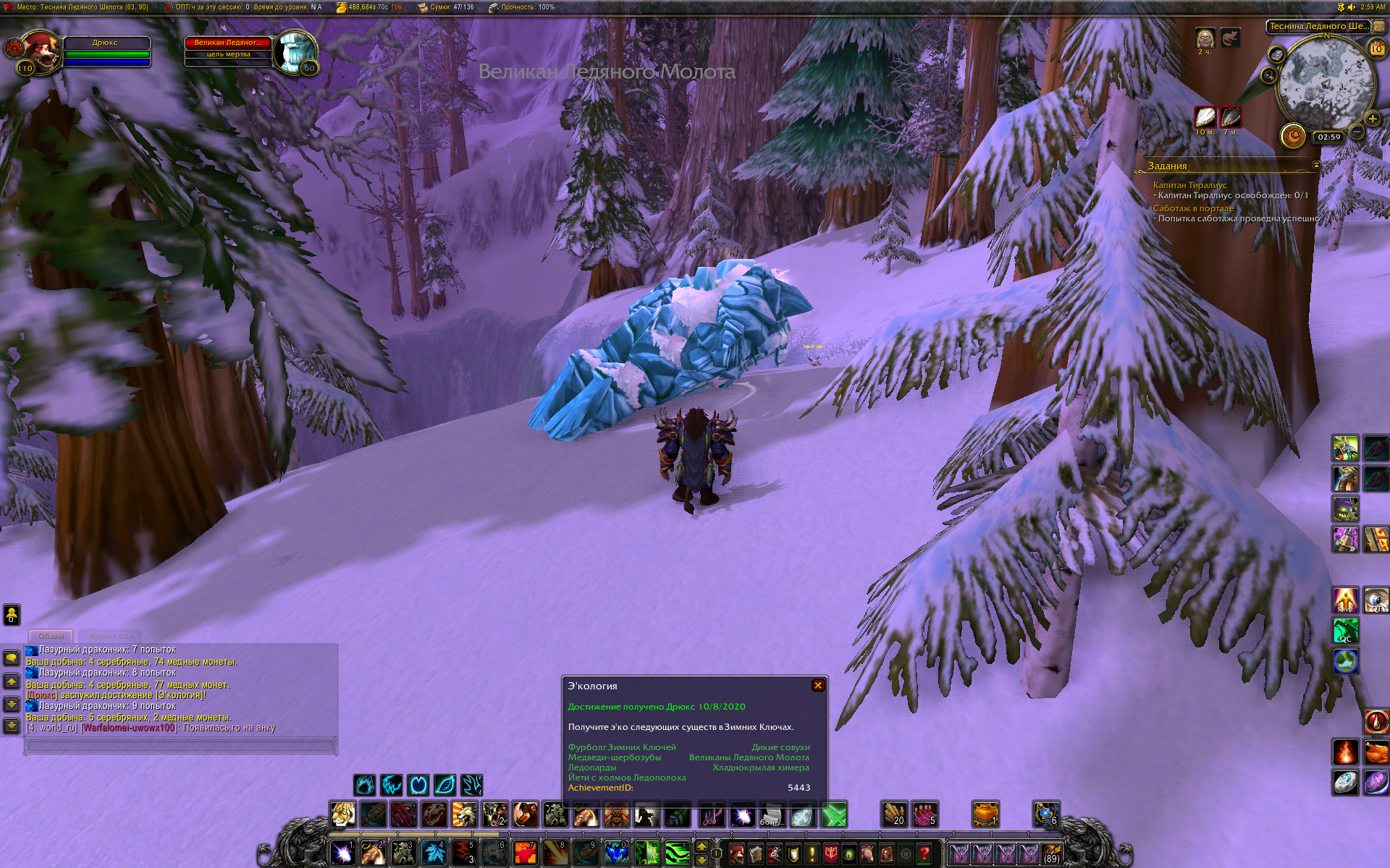EpicWOW x1 server. Loremaster executed earlier, saw the achievement question. Walked to the place of execution. to get eco ice giants, it was necessary to kill 9 mobs of the family - guardians and others. Eco obtained from the first frostmaul giant. I attach a screenshot. WoWScrnShot_081020_055939.jpg (609,567 bytes) |