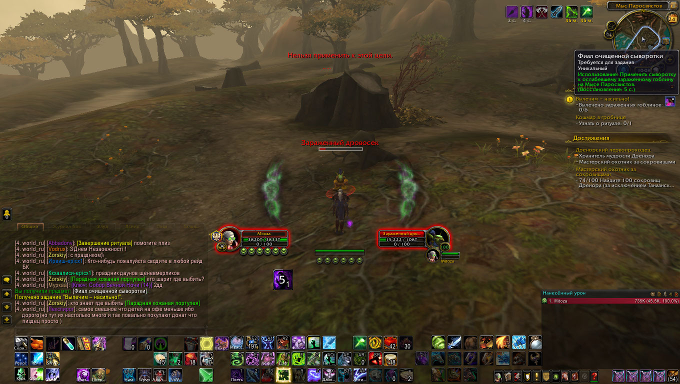 Кошмар в гробнице - не засчитывает первый пункт "узнать о ритуале" Вылечим – насильно! - не возможно вылечить гоблинов,просто не применяется на них кв итем (пробовал на фул и лоу хп) WoWScrnShot_082420_100834.jpg (277,398 bytes) WoWScrnShot_082420_100848.jpg (281,722 bytes) |
