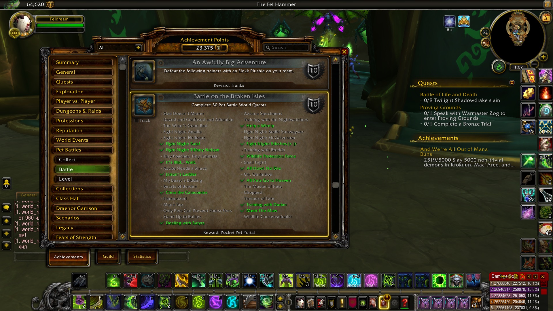 3. Азсунские экземпляры - https://ru.wowhead.com/quest=42165 - выполняется, но не учитывается кил или поимка питомцев, тем самым задание не засчитывается.