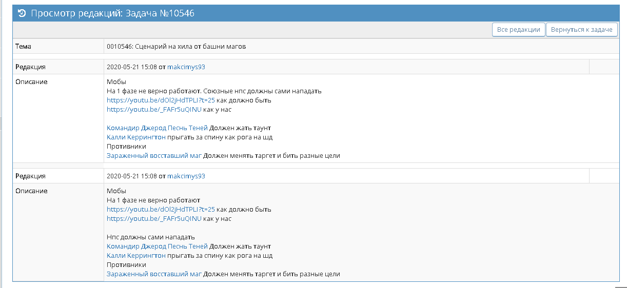 | Description | Подавал заявку на корректировку сценария башни магов на хила , задачу закрыли , квест так и работает некорректно. | ||||