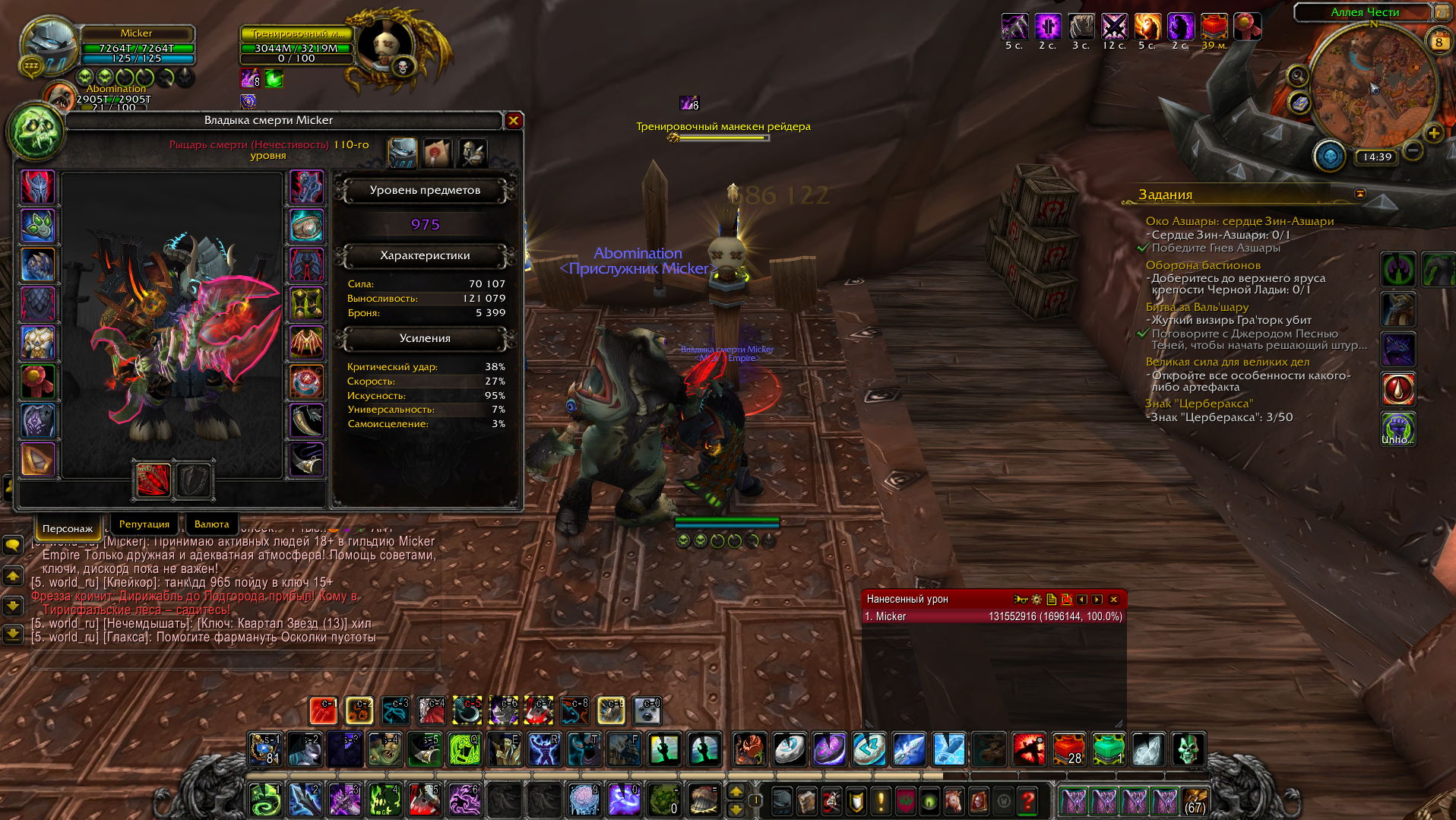 | Description | Здравствуйте, играю на uwow уже очень долго, перепробовал массу классов и специализаций, в данный момент играю на Unholy Dark Knight, из за моего урона в 1.7кк меня никуда не берут, не в ключи не в гер АПТ, я устал уже бегать и делать локалки Аргуса и расколотых островов, прошу разобраться с моей проблемой, потому что я уже устал слышать порицания в свой адрес, хотя механика класса полностью мне известна. | ||||