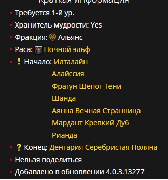 | Summary | 0012198: Квест "Жрица Луны". Ночной эльф. | ||||