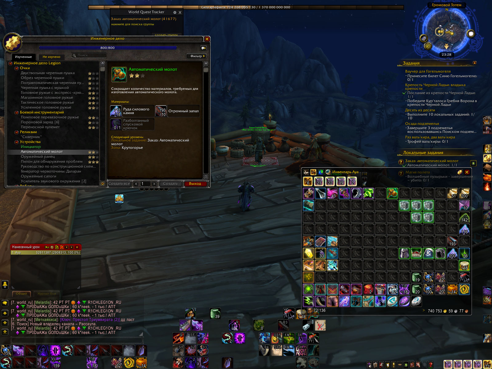| Description | Добрый день! не сдается локалка на автоматический молот в Громовом тотеме. Ни автоматически не сдается, ни НПС не принимает. Все бы ничего, но мне нужно получить рецепт на 3 звезды. Пробовал разные способы сдать локалку, и даже крафтить молот именно на месте. Ничего не получается. Возможно это визуальный баг с тем, что локалка есть, а на самом деле сейчас ее нет. Можете объяснить? | ||||