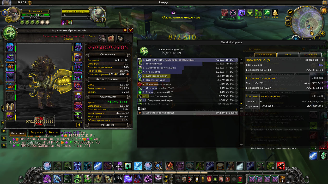 | Description | Хаст и кол. кастов моба. 14% - 10 атак 23% -11 атак 34% - 12 атак 48% - 13 атак 56% - 14 атак 67% - 15 атак 77% - 16 атак 89% - 17 атак Не зря я кинул то что выше, ибо это уже какойто капец, и я хз что делаеться. Мб я сейчас буду говорить дичь, но проблема вроде есть. Так вот у меня при 87% хасты, валька даёт 15 кастов, хоть должно 16 ( скрин №1), так же и на 42% хасты даёт 13 кастов(№2) - это первое. Второе, почему на логах у анхоликов, с временем каста вальки 1.60 сек, что говорит нам, что имеет хаст где-то 26%, дают за призыв 12 кастов, хоть по идеи должно 11, ( https://www.warcraftlogs.com/reports/yRfgC4QqdtBZPL1a#fight=17&type=damage-done&source=14&ability=-207349&view=events ) так же у меня в некоторых случаях, я не понимаю, там как будто ласт каст полностю проходит, но он просто не долетает (№ 3 и 4). | ||||
