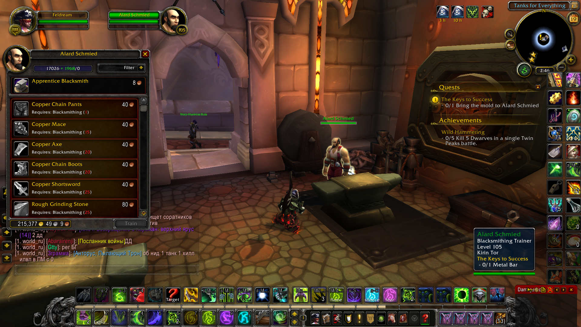 | Description | For this https://www.wowhead.com/quest=41185/the-keys-to-success you need to craft keys with the help of https://www.wowhead.com/npc=92183/alard-schmied . The problem is that he doesn't even have the option (speak bubble) to begin the crafting. This quest is part of a chain quest you get every 14 days for archaeology. It is related to https://www.wowhead.com/achievement=10601/surveying-the-land https://www.wowhead.com/achievement=10602/this-side-up and is necessary for https://www.wowhead.com/achievement=10603/a-keen-eye | ||||