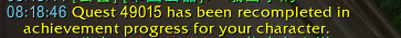 Sorry, is this a task of increased complexity? Just select your own character frame, then enter the command in the chat And just press the "Print Screen" key on the keyboard, then take a full screenshot of the screen from the / Screenshots folder of the game client and add it to the message on the Bugtracker. Only. Okay. The quest will be considered completed, there is no reward, it is impossible to take the quest again. Write to the forum of your game server and ask to re-issue quest 49015. |
