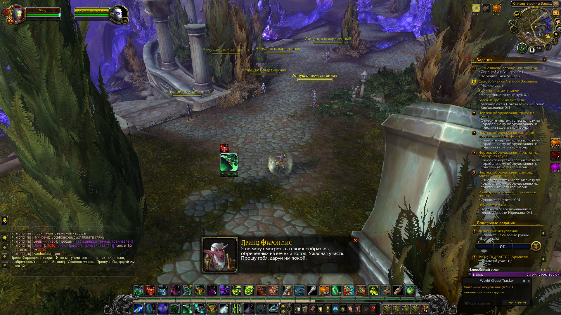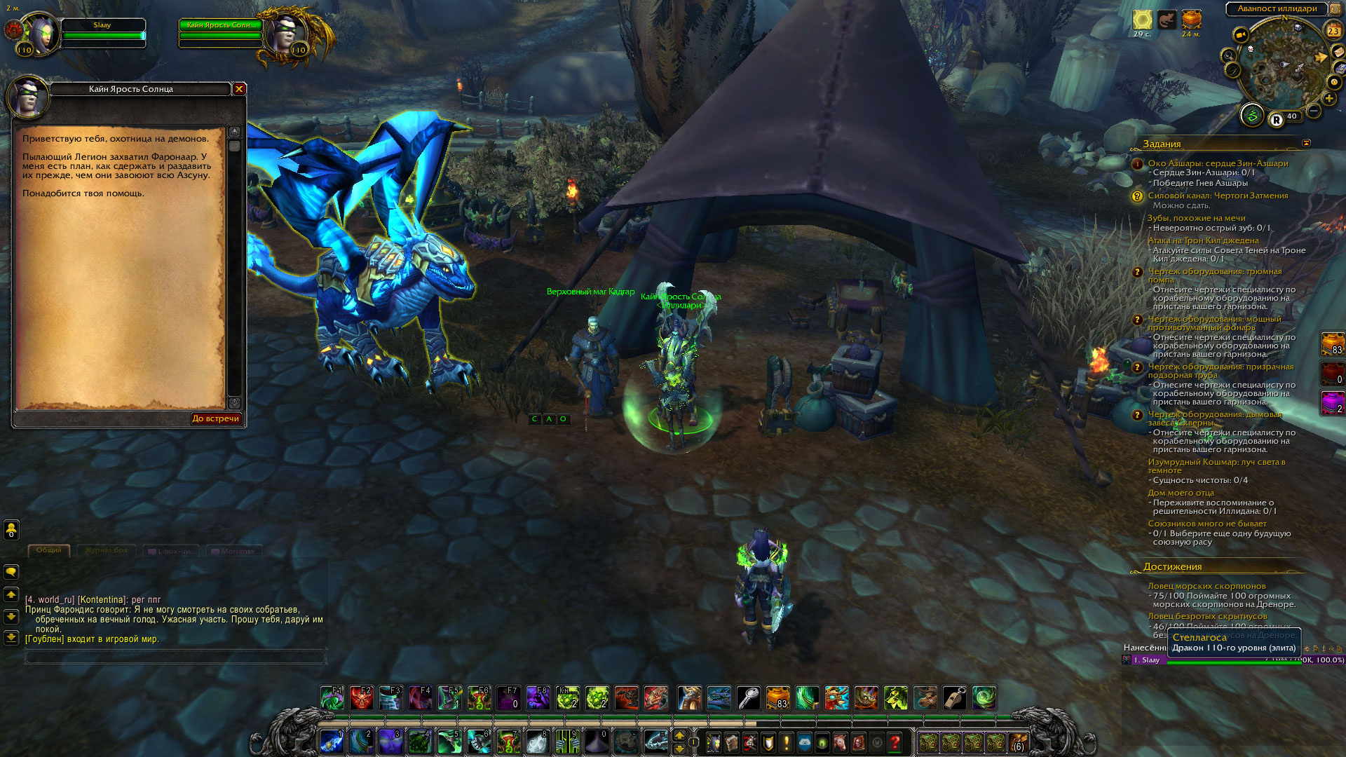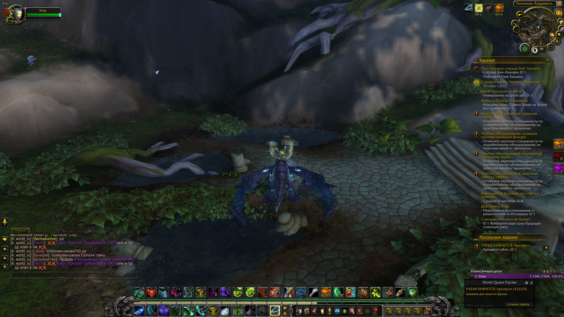 После Косы душ квесты выдает непись - охотница на демонов, которая автоматом спавнится в зоне Фаронаара. Советую рубануть все квесты с Дренора, которые связаны с пристанью. Пристань вроде как не работает пока что и смысла сокеты занимать этими квестами никакого. А вот в случае переполнения могут локалки не браться и автовыдаваемые квесты тоже. |