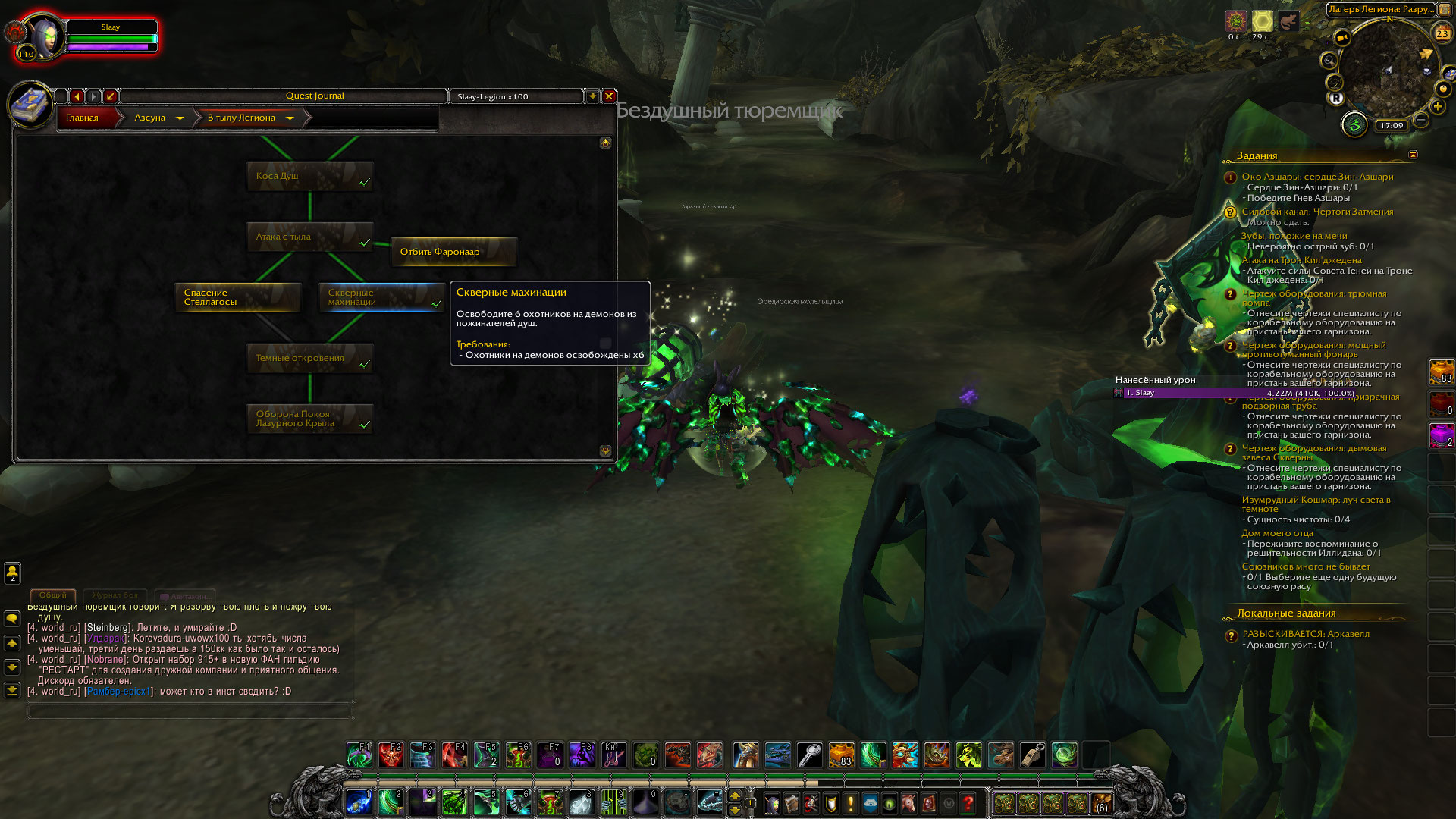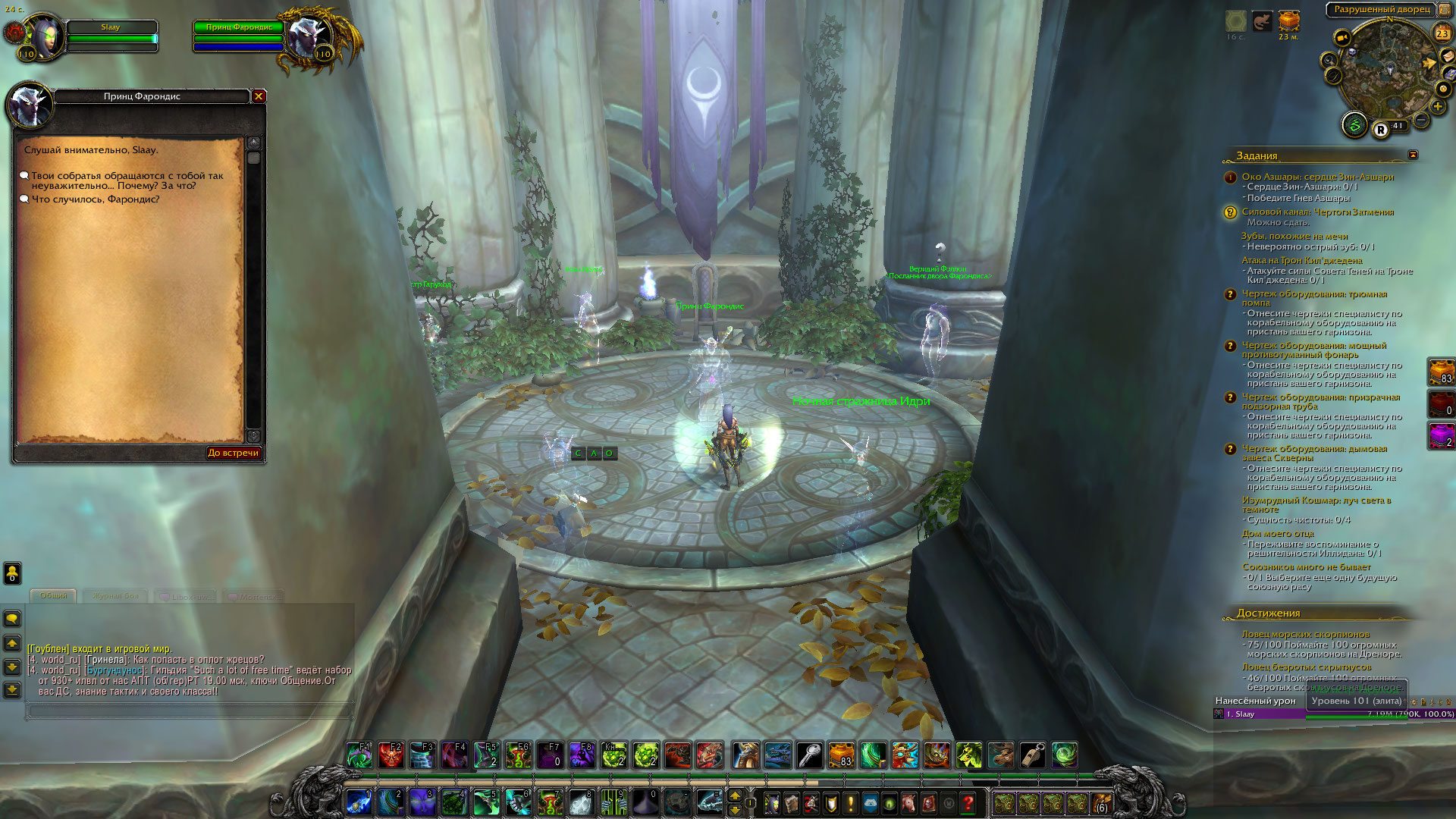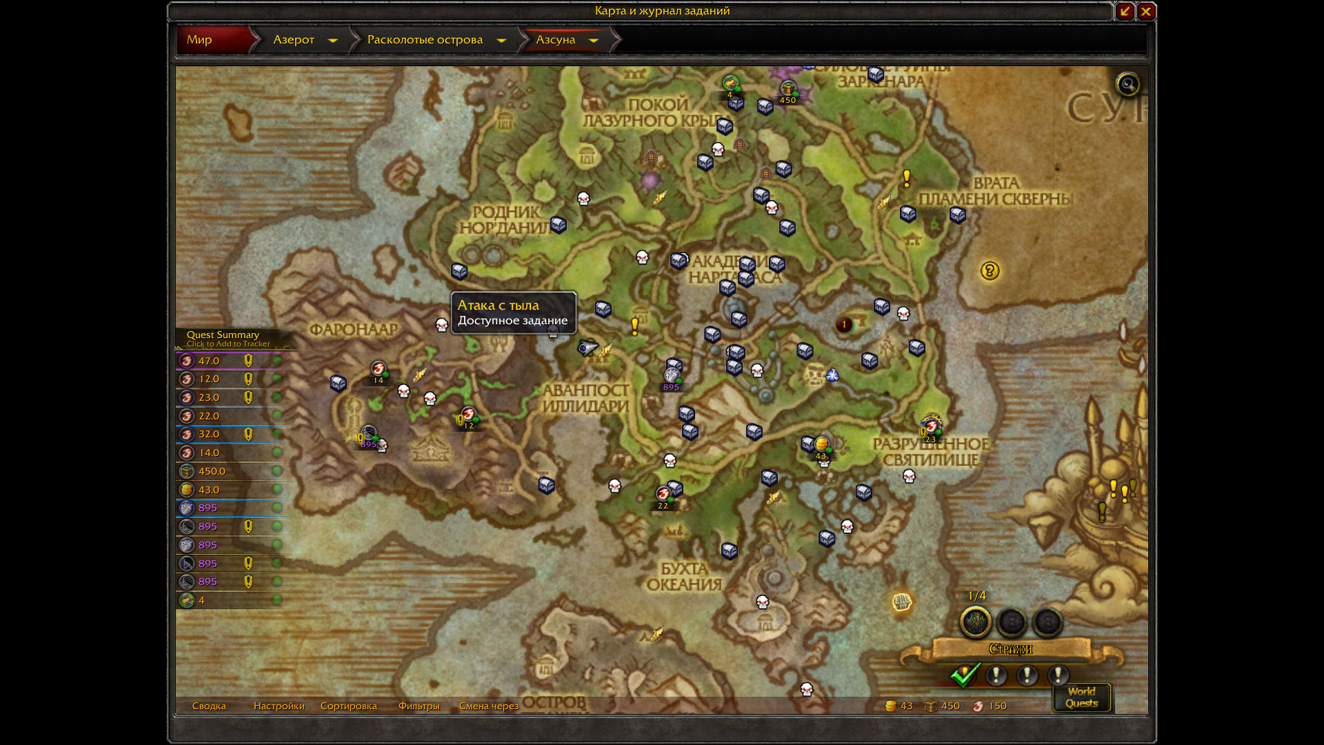 После Косы душ квесты выдает непись - охотница на демонов, которая автоматом спавнится в зоне Фаронаара. Советую рубануть все квесты с Дренора, которые связаны с пристанью. Пристань вроде как не работает пока что и смысла сокеты занимать этими квестами никакого. А вот в случае переполнения могут локалки не браться и автовыдаваемые квесты тоже. |