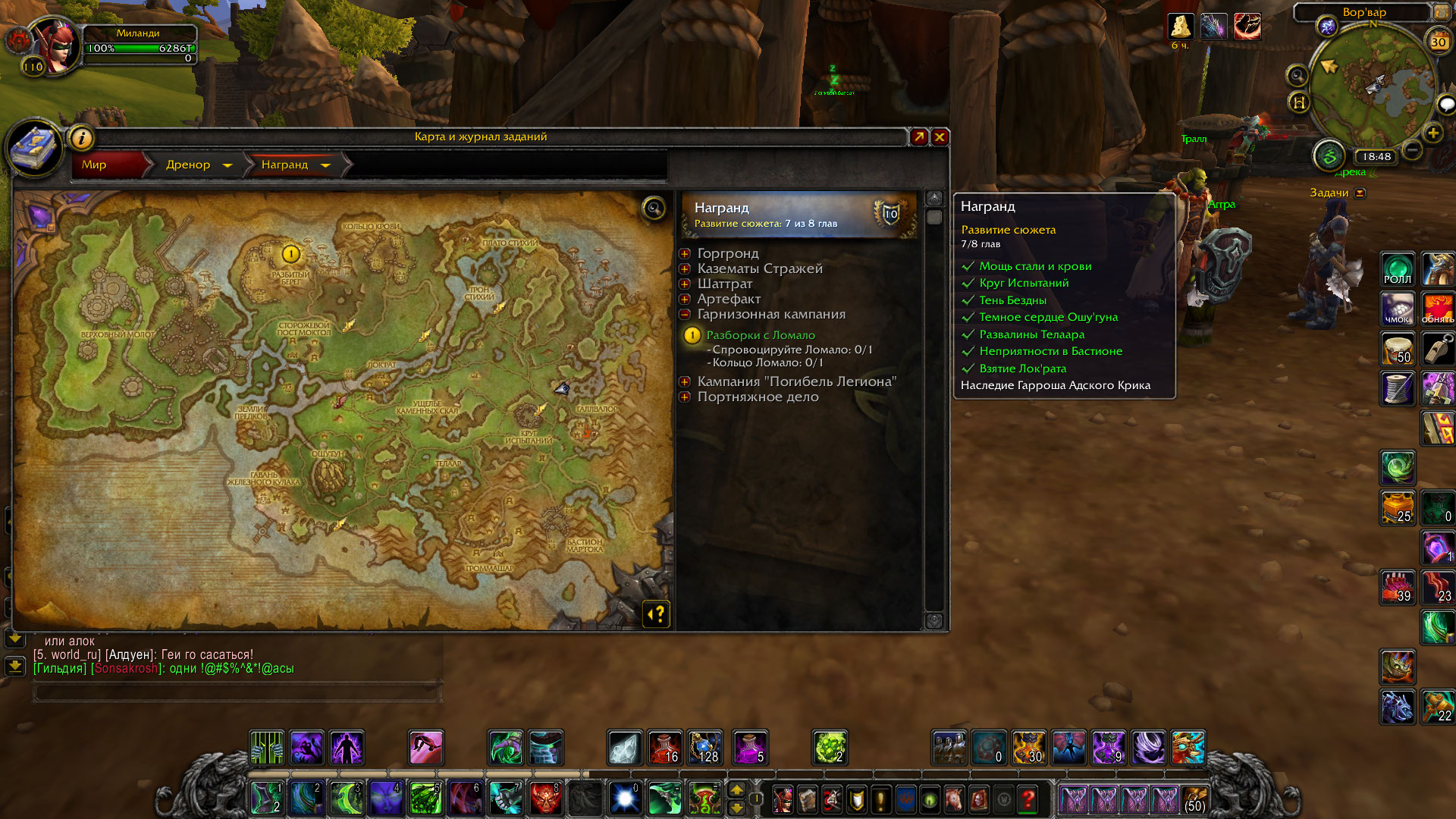 | Description | Я выполнила квест "Правосудие для Тралла" (Дренор, Награнд, Вор'вар), и через пару минут был краш сервера, моё достижение не сохранилось, и пропал сам квест. Никто его не даёт и никто не принимает. | ||||
