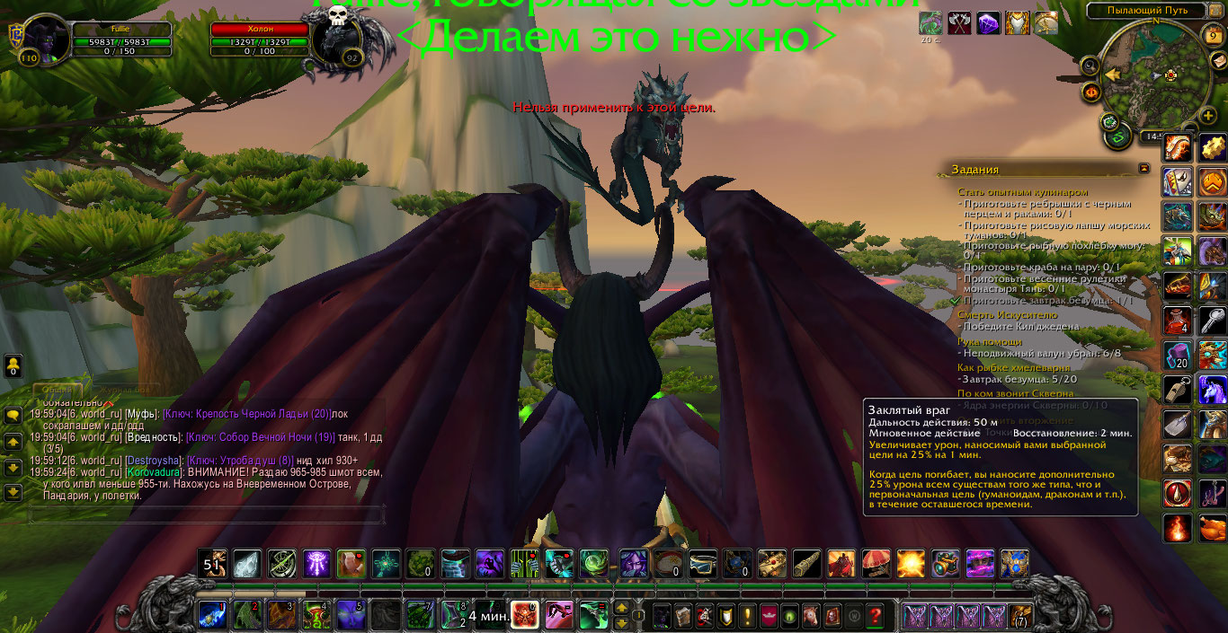 DescriptionПо какой-то причине не могу убить некоторых мобов. Пыталась Холона убить - не могу. Побила несколько других, среди них тоже обнаружились такие, которых атаковать не выходит, причем одних мобов одного и того же типа могу, а других нет (https://ru.wowhead.com/npc=72895, например).
