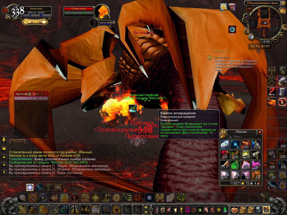 Собственно первые 2 скрина это как раз после первого перезахода и попытки заюзать камень возвращения |