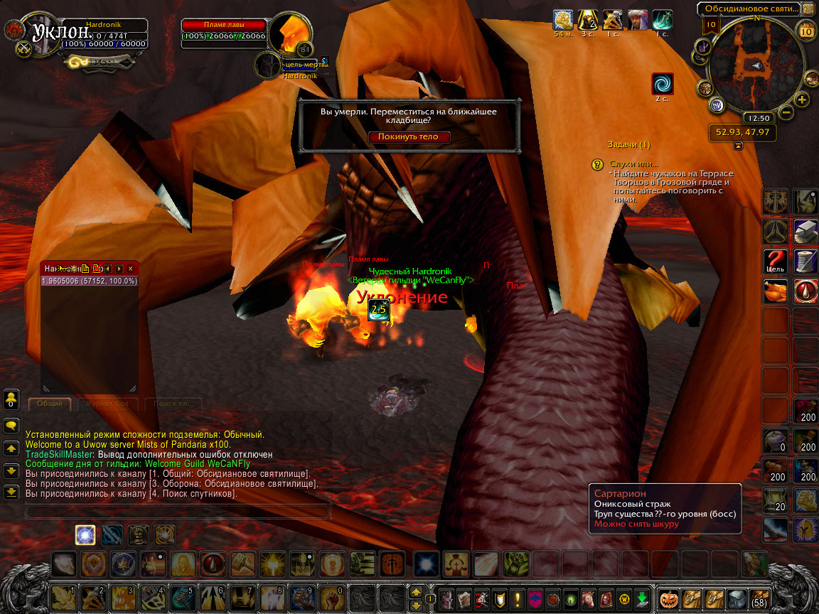 Данный баг не только в этом инсте, это массовая проблема по всем инстам. Довольно часто баг вылазиет, когда релогаешся трупом в инсте и падаеш вновь от боссов/мобов. http://tracker.legionbugs.com/view.php?id=11647 |
